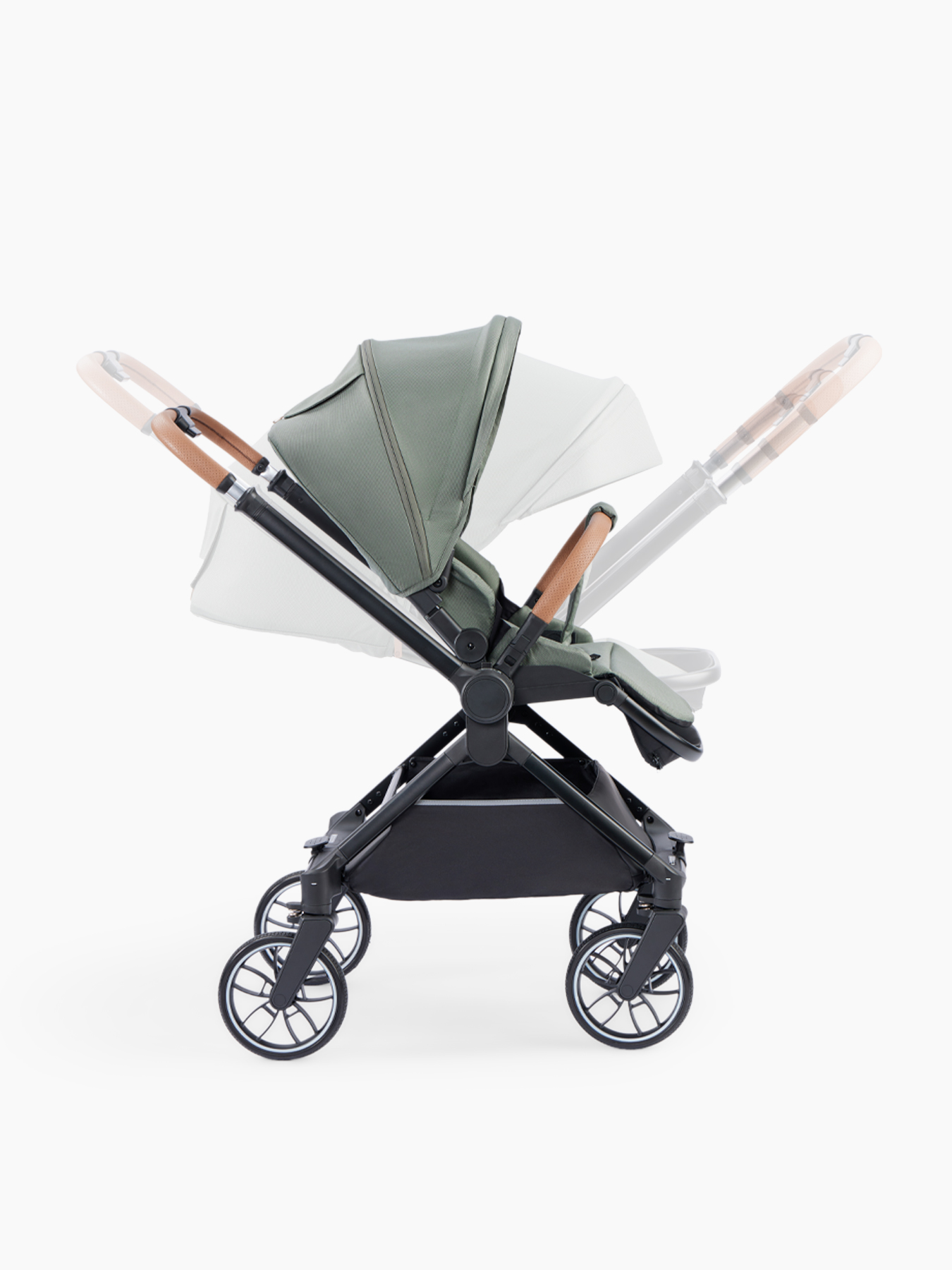 Отделка из экокожи придает коляске роскошный вид. Съемный бампер с разделителем для ног, магнитная пряжка на пятиточечных ремнях и регулируемая наклонная подножка гарантируют, что ваш малыш будет в полной безопасности и комфорте.