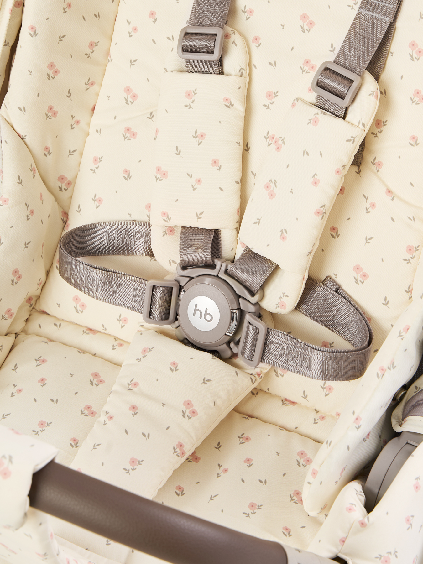 • Безопасность: откидной съемный бампер, магнитная пряжка на пятиточечных ремнях безопасности с мягкими накладками, стояночный тормоз блокирует оба задних колеса