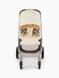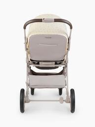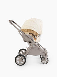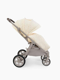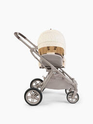 Передние колеса также вращаются на 360° для максимальной маневренности, облегчая управление даже одной рукой. Капюшон с возможностью расширения до бампера надежно защищает от солнца, дождя и ветра. Большая корзина позволит взять с собой все необходимое для прогулки.