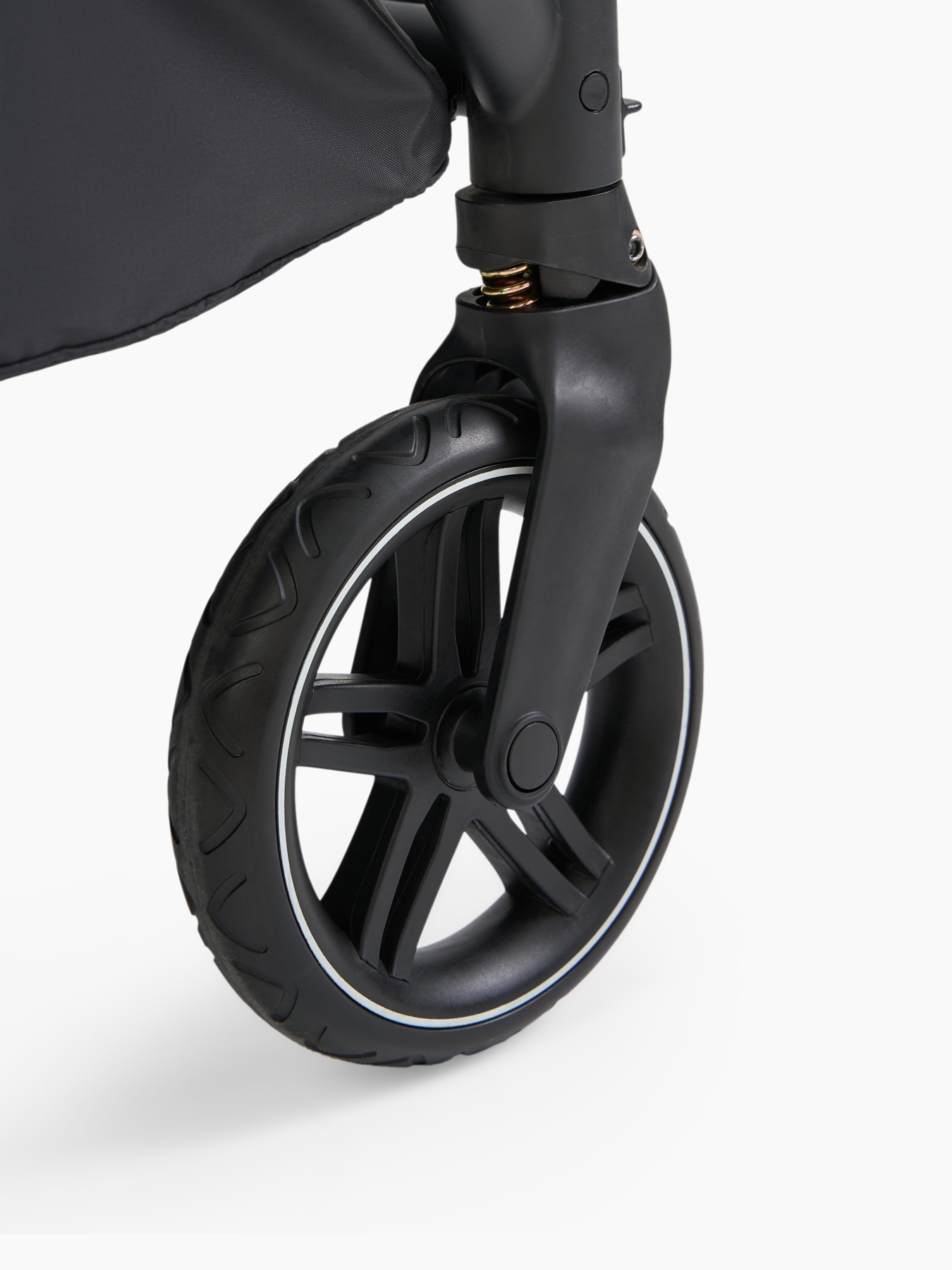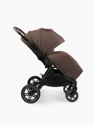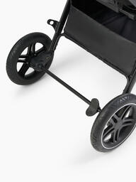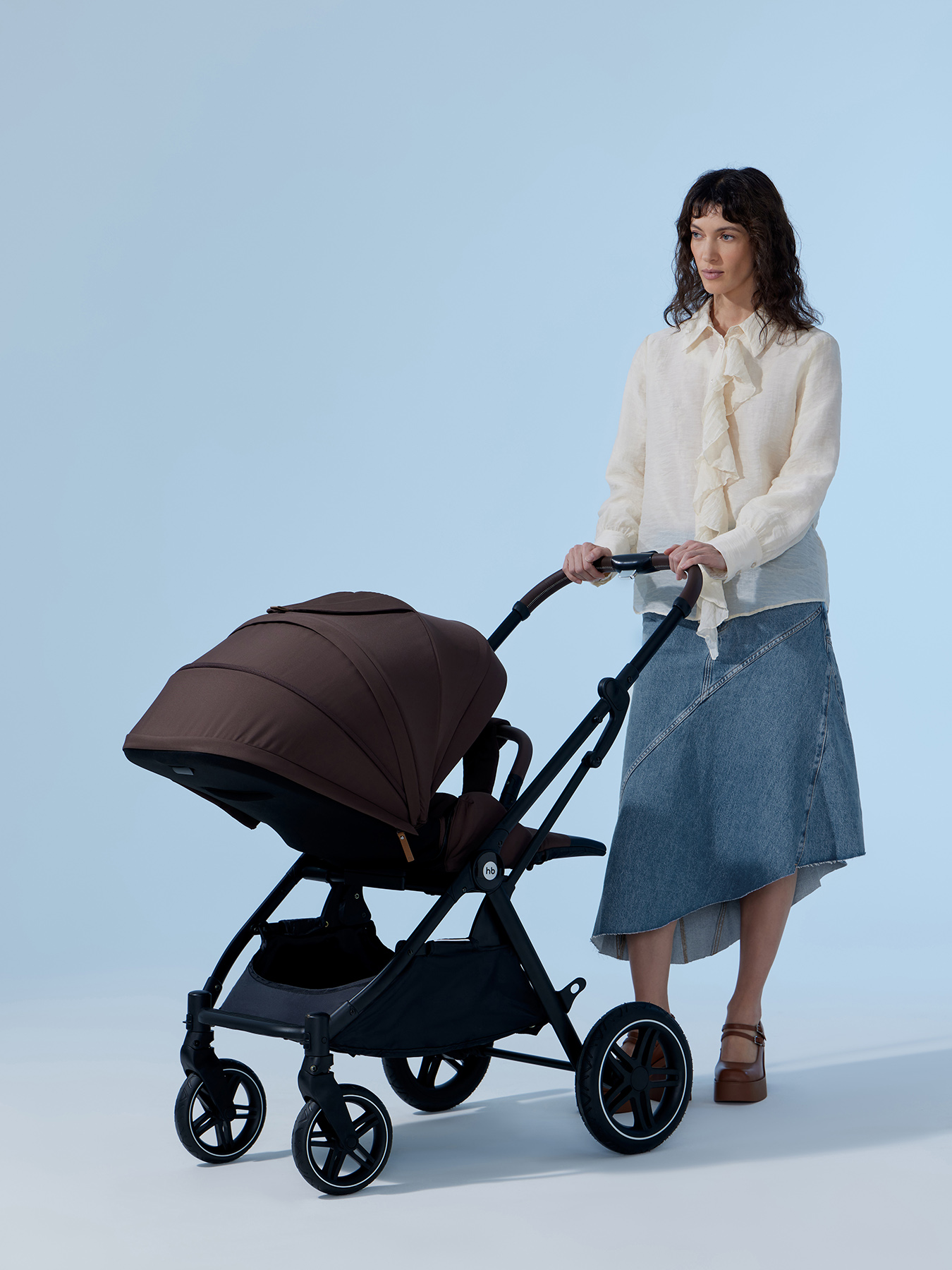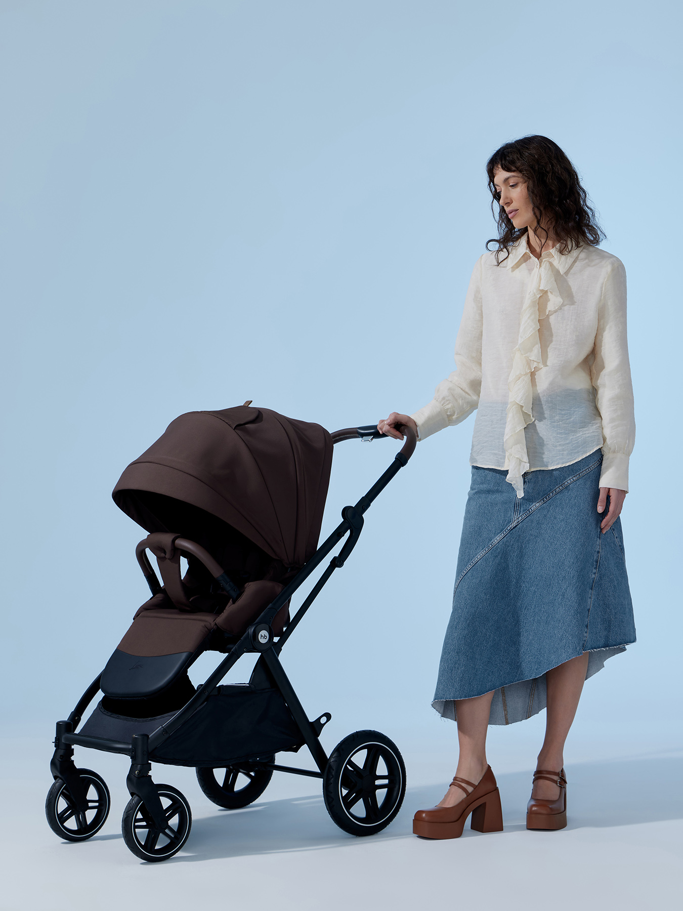 Передние колеса также вращаются на 360° для максимальной маневренности, облегчая управление даже одной рукой. Капюшон с возможностью расширения до бампера надежно защищает от солнца, дождя и ветра. Большая корзина позволит взять с собой все необходимое для прогулки.