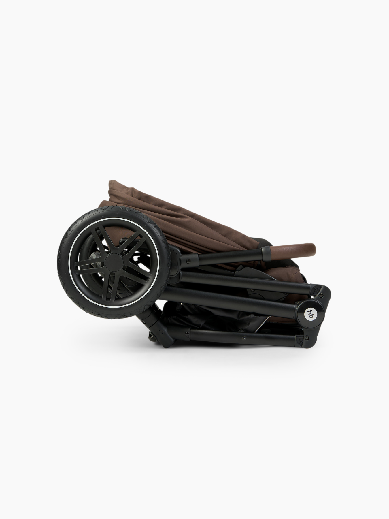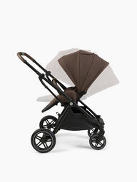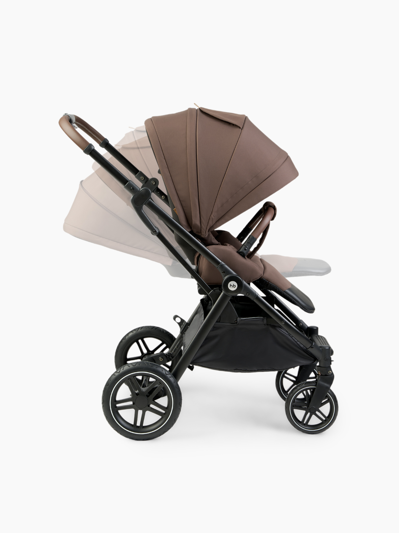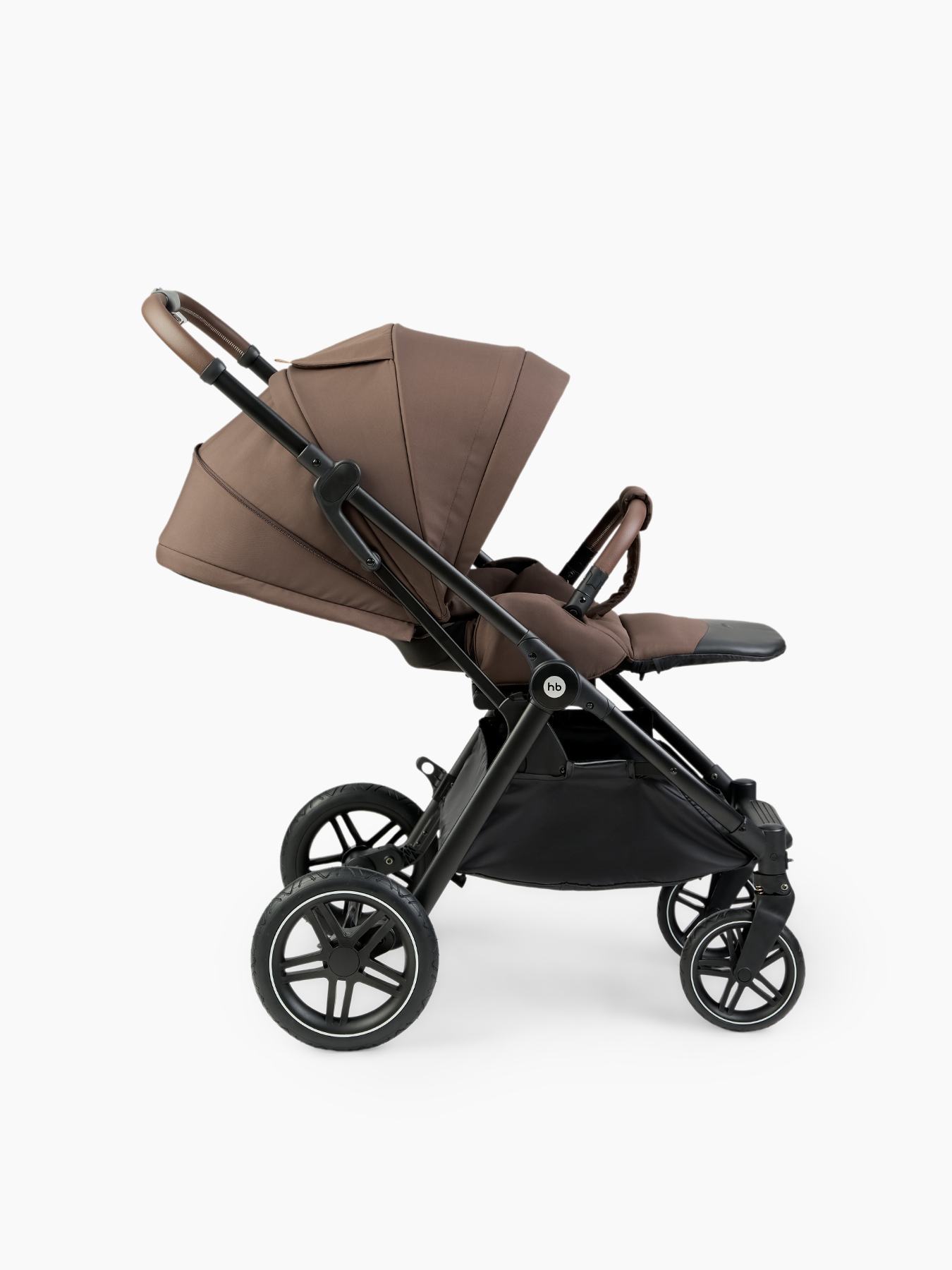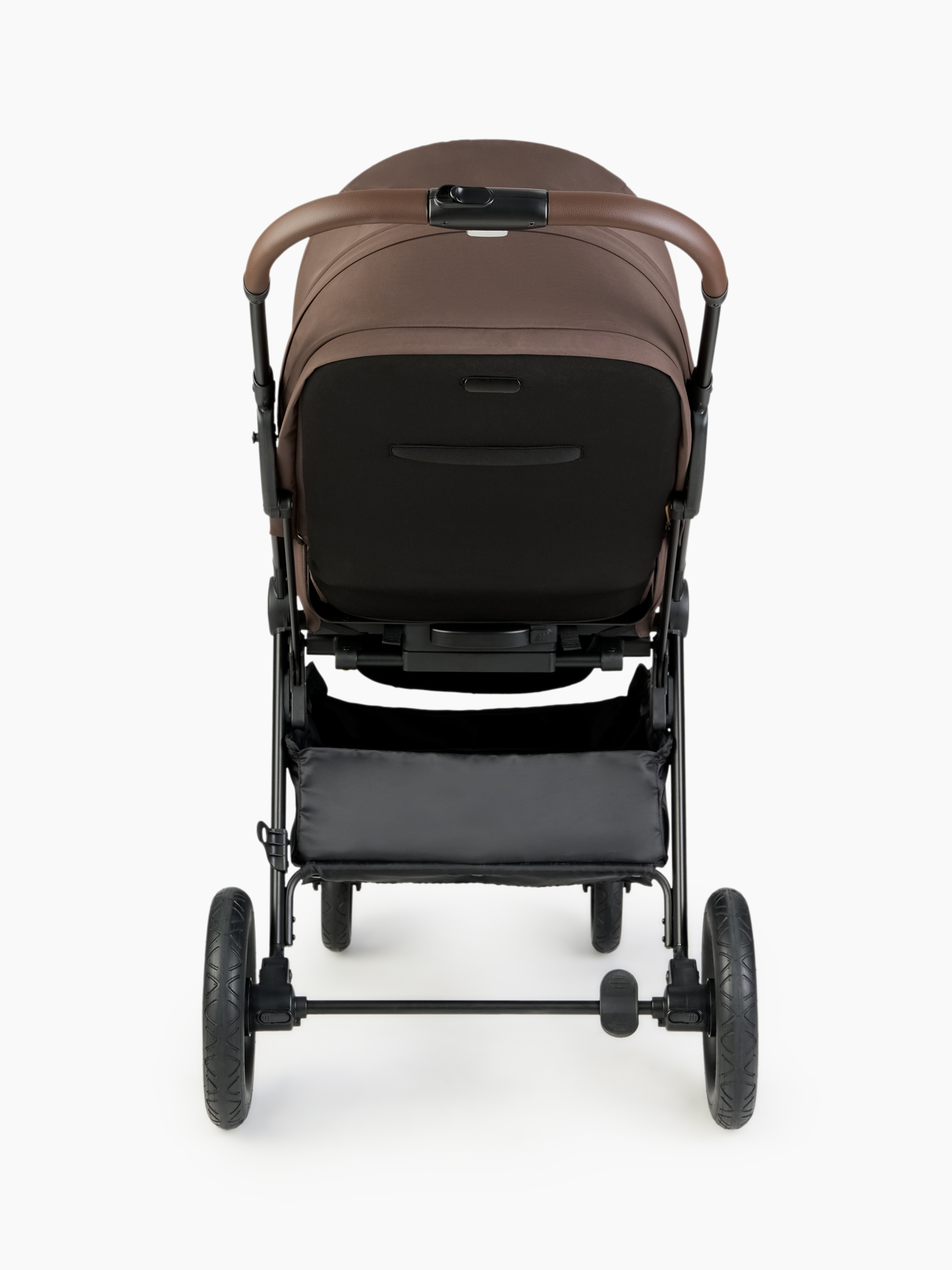 Передние колеса также вращаются на 360° для максимальной маневренности, облегчая управление даже одной рукой. Капюшон с возможностью расширения до бампера надежно защищает от солнца, дождя и ветра. Большая корзина позволит взять с собой все необходимое для прогулки.