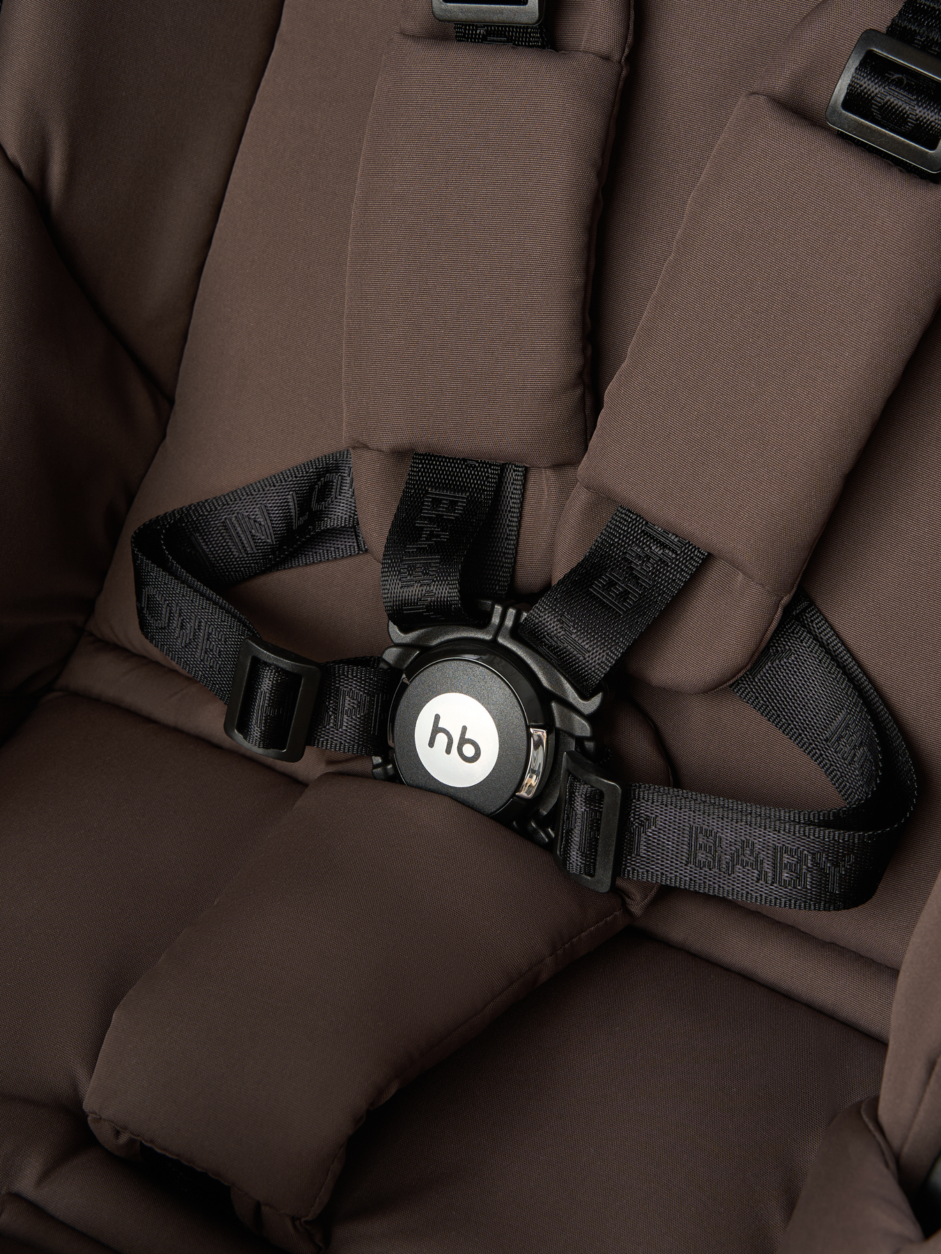 • Безопасность: откидной съемный бампер, магнитная пряжка на пятиточечных ремнях безопасности с мягкими накладками, стояночный тормоз блокирует оба задних колеса