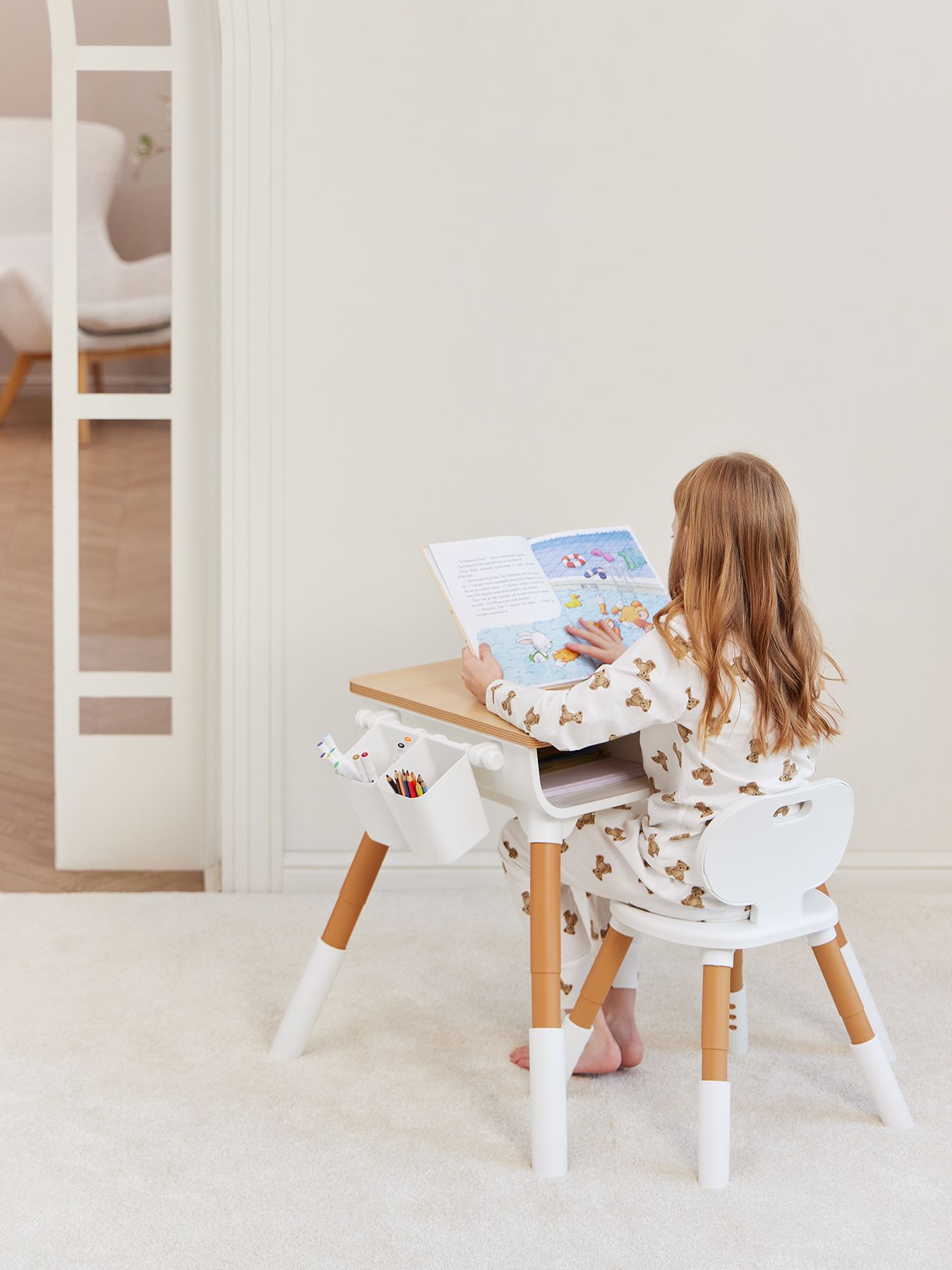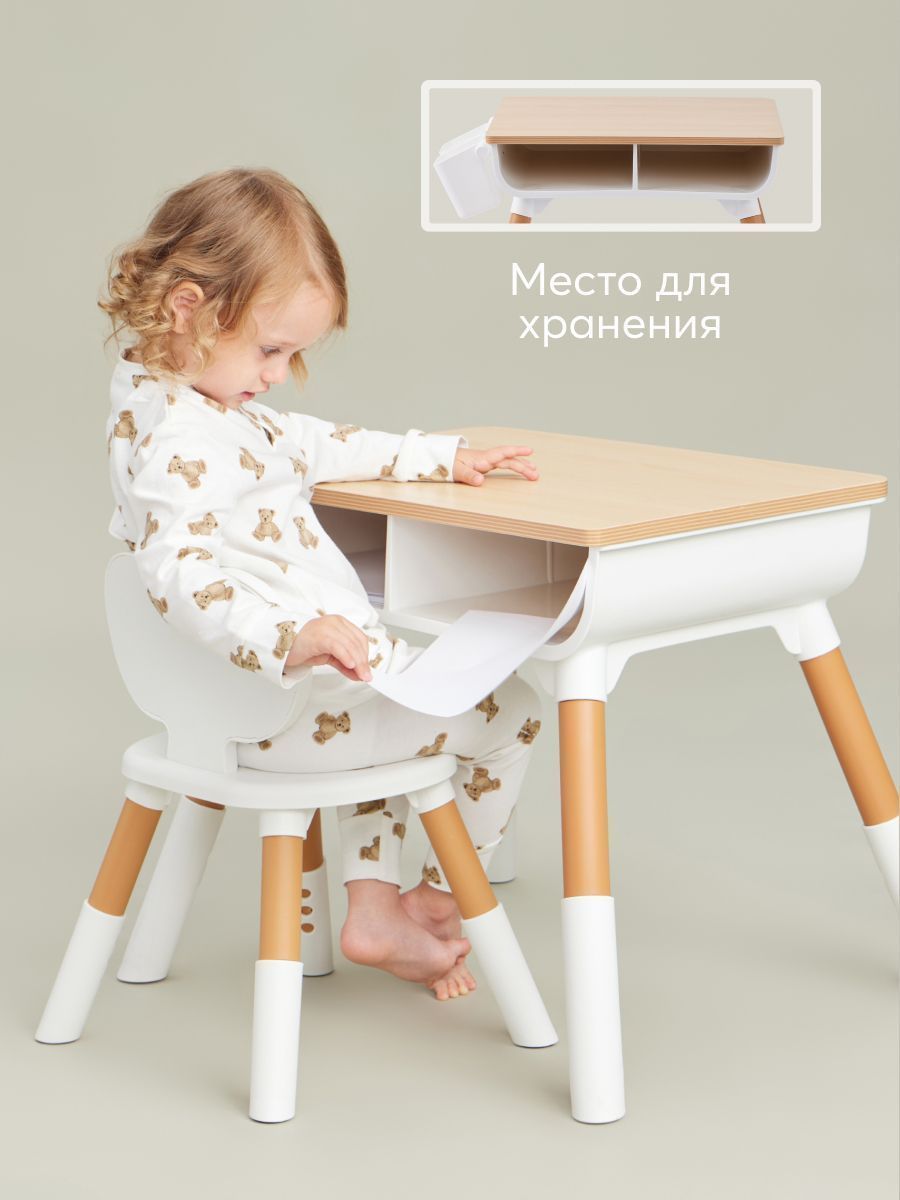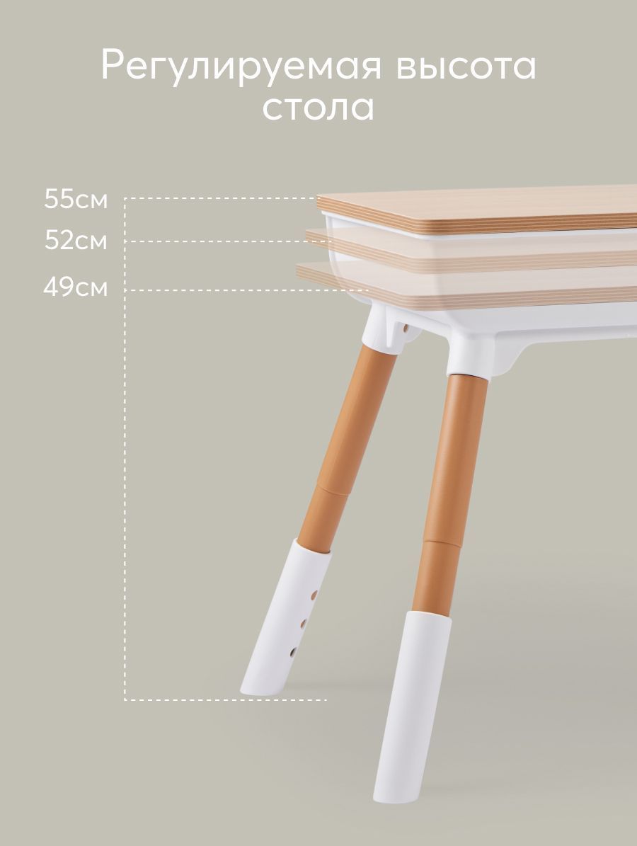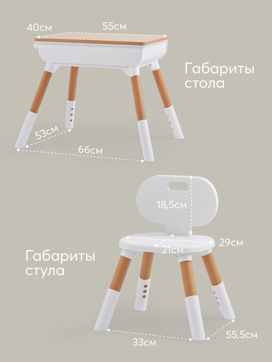 Набор мебели подходит для детей от года и старше. Правильная посадка за столом очень важна для развития детей. Высота стола, так же, как и высота сиденья, регулируется, благодаря чему вы всегда сможете настроить верное положение для растущего ребенка. Размеры стола и стула выверены так, чтобы быть максимально удобными для малышей. Форма без острых углов разработана специально, чтобы ребенок не получил травму. Дизайн мебели выполнен в спокойных природных тонах. Комплект отлично впишется в любой интерьер и способствует созданию спокойной атмосферы в детской комнате.