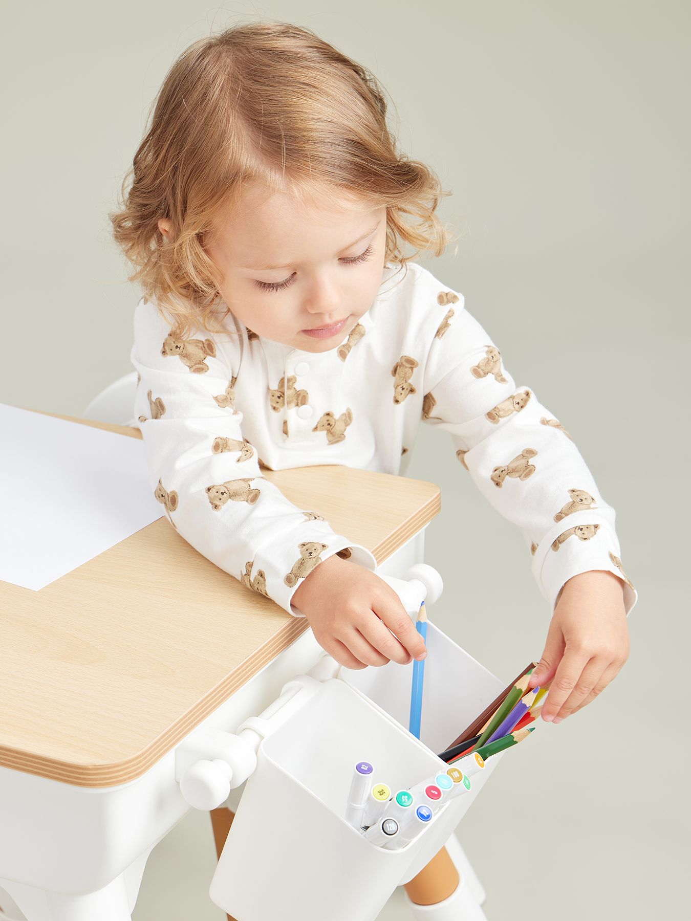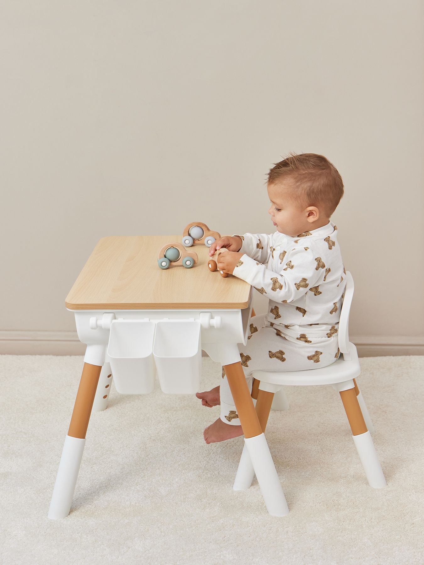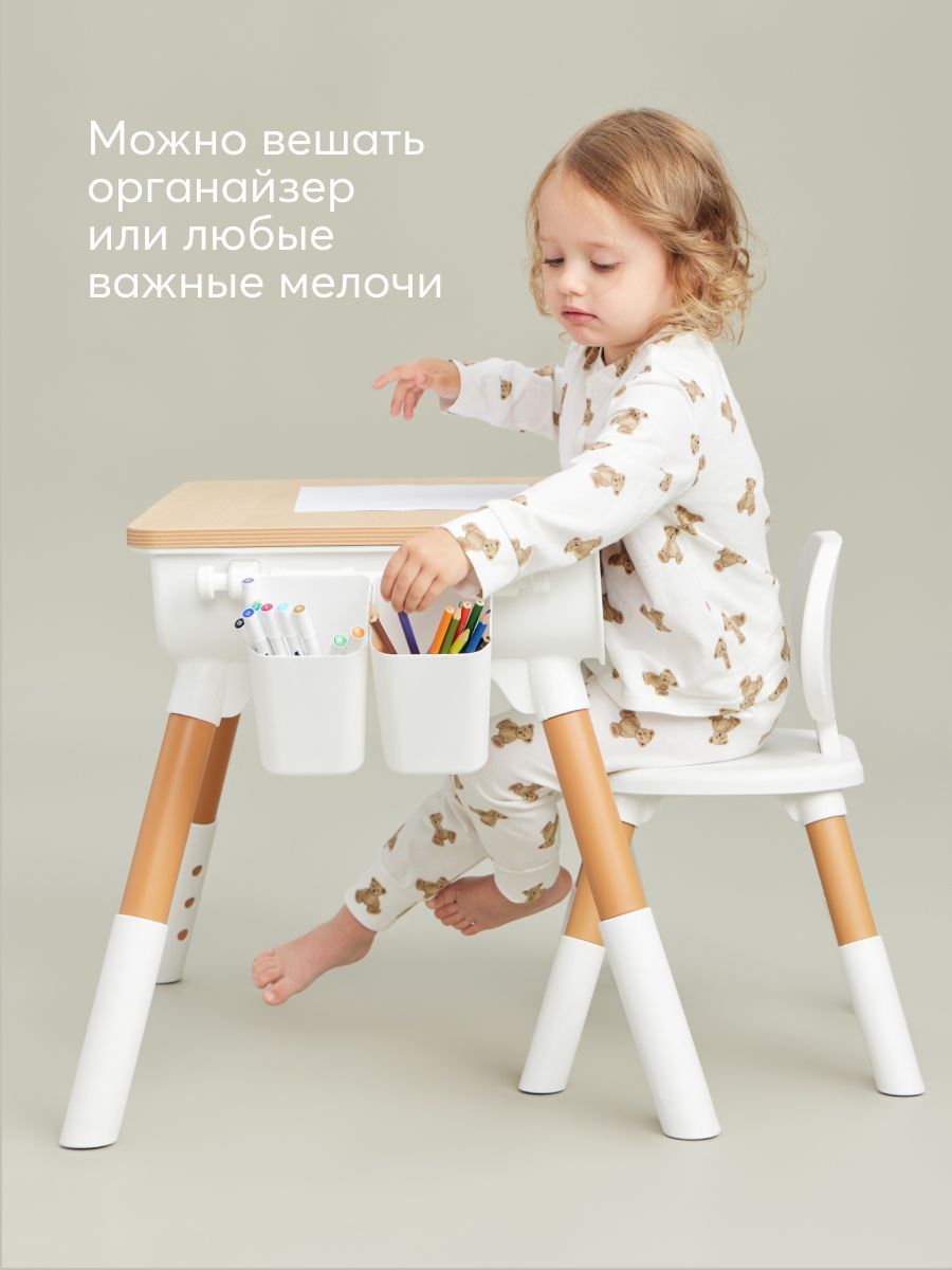 Набор мебели подходит для детей от года и старше. Правильная посадка за столом очень важна для развития детей. Высота стола, так же, как и высота сиденья, регулируется, благодаря чему вы всегда сможете настроить верное положение для растущего ребенка. Размеры стола и стула выверены так, чтобы быть максимально удобными для малышей. Форма без острых углов разработана специально, чтобы ребенок не получил травму. Дизайн мебели выполнен в спокойных природных тонах. Комплект отлично впишется в любой интерьер и способствует созданию спокойной атмосферы в детской комнате.