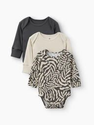 Набор из трех боди с длинным рукавом идеально подходит для новорожденных малышей. В комплекте есть как однотонные бодики в рубчик, так и с ярким стильным принтом, что делает их универсальным подарком на выписку из роддома. Цвета подойдут как для мальчика, так и для девочки. Изготовлены из 100% хлопка. Такая ткань хорошо «дышит» и отводит влагу, что особенно важно для младенцев, которые нуждаются в комфортной температуре тела. Крой песочника учитывает физиологию маленьких детей и предусматривает достаточно места под подгузник, а застежки на кнопках помогут быстро его сменить. У маленьких размеров (56 и 62) есть антицарапки, швы изделия выполнены наружу. Раскрывающая горловина облегчит переодевание младенца. Комплект для новорожденного прекрасно подходит для весенних месяцев, а в прохладную погоду его можно использовать, как поддеву. Спокойные однотонные цвета будут отлично смотреться на семейной фотосессии или же на крестинах. Подарочный комплект идеально подходит к любому случаю: будь то празднование дня рождения малыша или просто желание порадовать родителей.