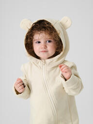 Комбинезон для новорожденных из футера можно носить круглый год: зимой как нательный под верхнюю одежду, в осенний период и летом, как самостоятельный предмет гардероба. Комбинезон утепленный начесом их хлопка, выполнен в классических цветах, потому его просто вписать в гардеробы девочек и мальчиков. Благодаря молнии, которая уходит в ногу, слитное изделие легко надевать и снимать. Капюшон с милыми ушками закрывает уши и лицо от холода. Манжеты на рукавах и штанинах защитят от ветра. Трикотажная теплая модель на осень из мягкого и приятного материала заменит остальные вещи. Высокая молния до подбородка защитит вашего малыша от ветра и непогоды. Свободный крой не сковывает движения ребенка, модель износостойкая и практичная, не требует дополнительного ухода.