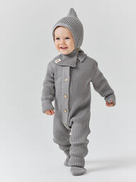 Вязаные детский комбинезон согреет малыша и добавит ощущение уюта. Комбинезон изготовлен из смеси хлопка и акрила, поэтому он мягкий, лёгкий и прочный, а также хорошо держит форму. Вязаное полотно обеспечивает хороший теплообмен. Застёгивается на пуговицы. Комбинезон можно носить как верхний слой. Благодаря стильному дизайну он отлично сочетаются с одеждой и аксессуарами в разных стилях. Комбинезон тянется, есть пространство под подгузник, в нём удобно спать и двигаться. Мягкие вязаные манжеты и горловина не сдавливают кожу и не вытягиваются.