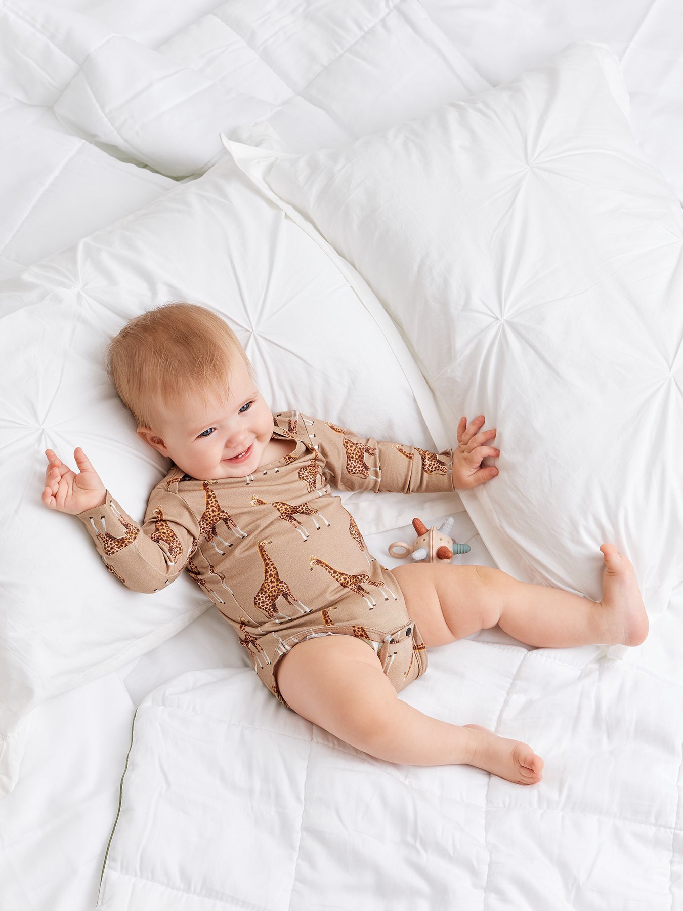 Боди для малышей скроено с учетом детской анатомии. Горловина расширяется, благодаря чему кофту легко надевать на малыша. Есть пространство под подгузник. Снизу застегивается на кнопки, благодаря чему будет легко переодеть малыша. Крой не сковывает движения, в боди комфортно играть, гулять и спать. Мягкий материал хорошо тянется и приятен кожи, отводит влагу. Благодаря стильному дизайну боди отлично подходит для выходов в свет и фотосессий.