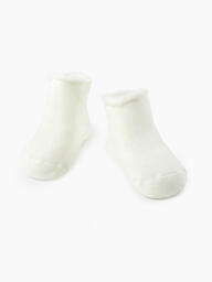 Тёплые носочки с начёсом согреют малыша дома и на прогулках. Мягкий материал не натирает, не пережимает ножку и приятно касается кожи. Прорезиненные элементы на подошве помогут держать равновесие на скользком покрытии.