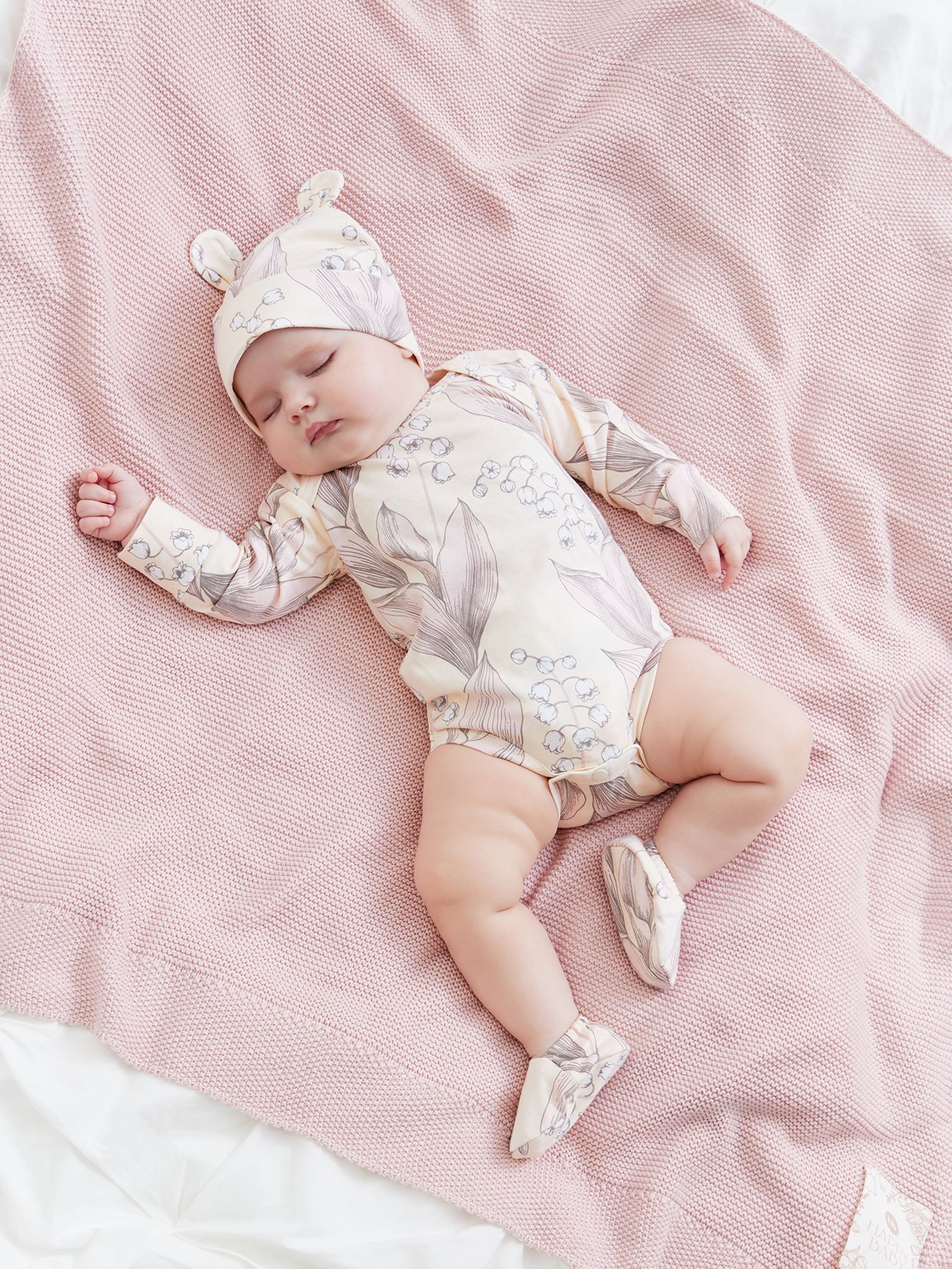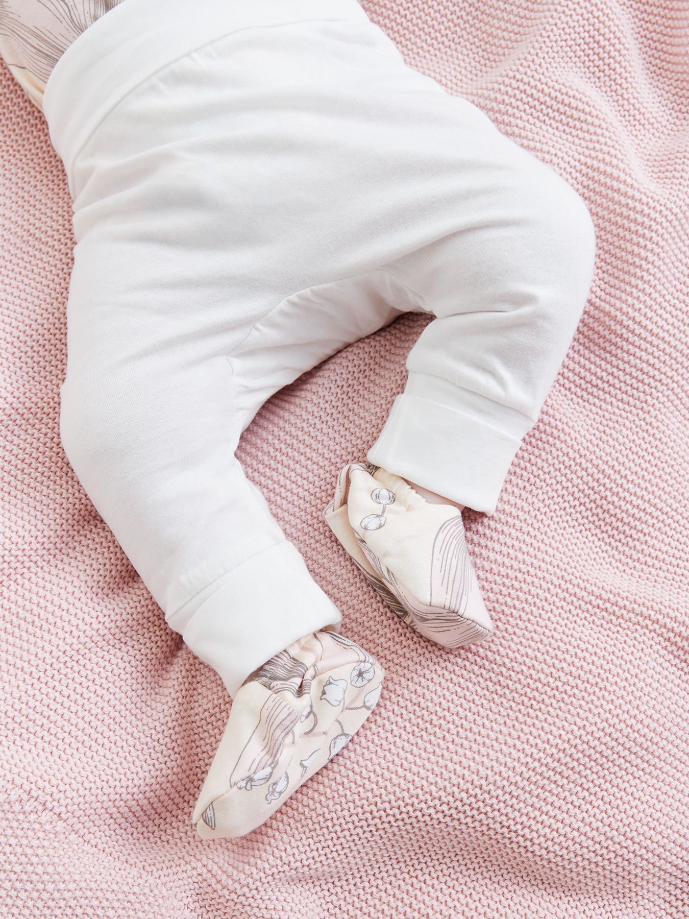 Уютные пинетки согреют ножки малыша с самого рождения. Продуманная конструкция обеспечивает правильную форму и высоту пинеток с учетом особенностей строения детской стопы, а мягкая резиночка надежно фиксирует пинетки на ноге, поэтому в них удобно спать и двигаться. Нежный дизайн поможет создать самый милый образ новорожденного для любого случая и первых фотосессий.
