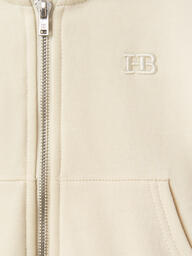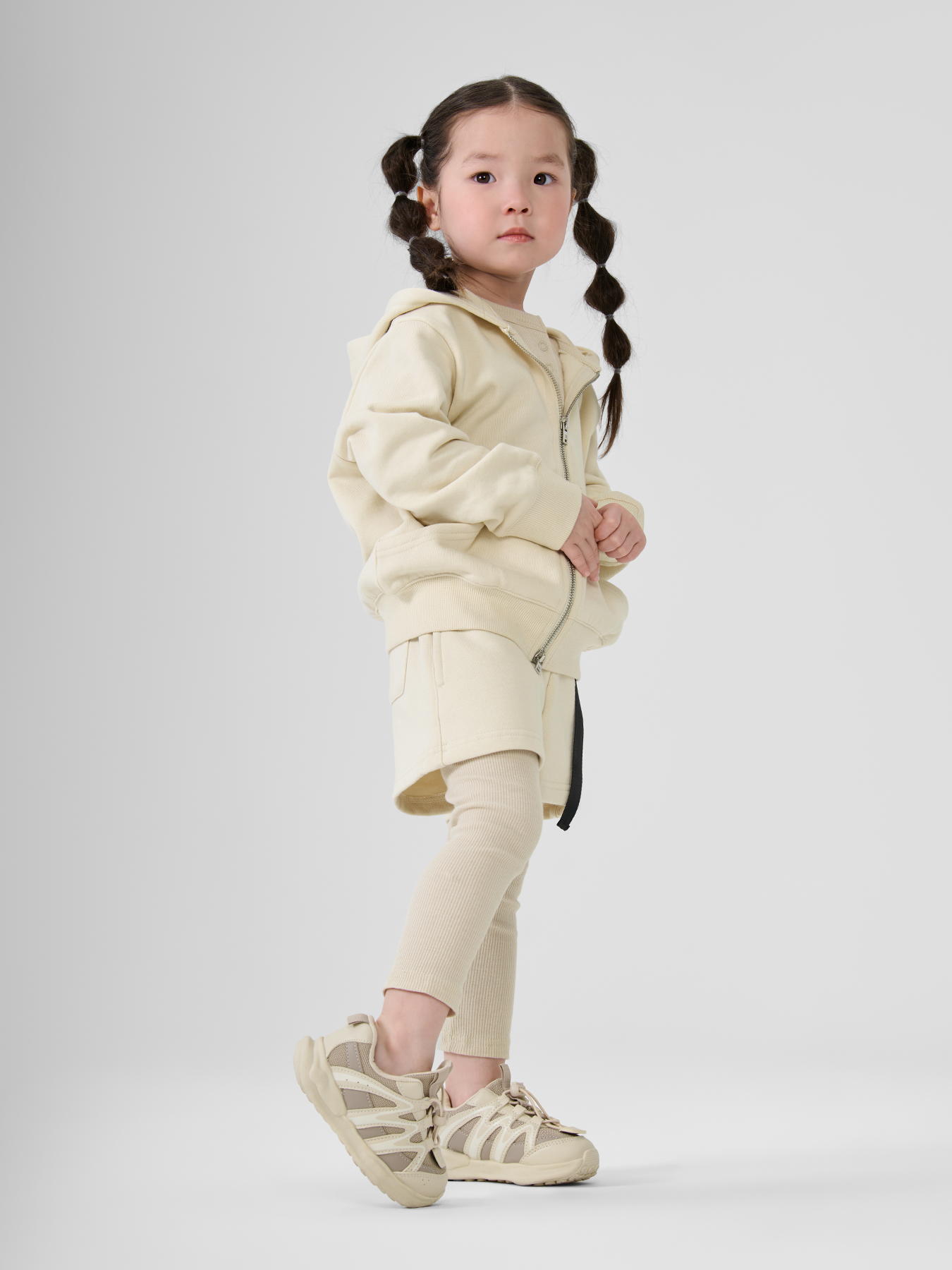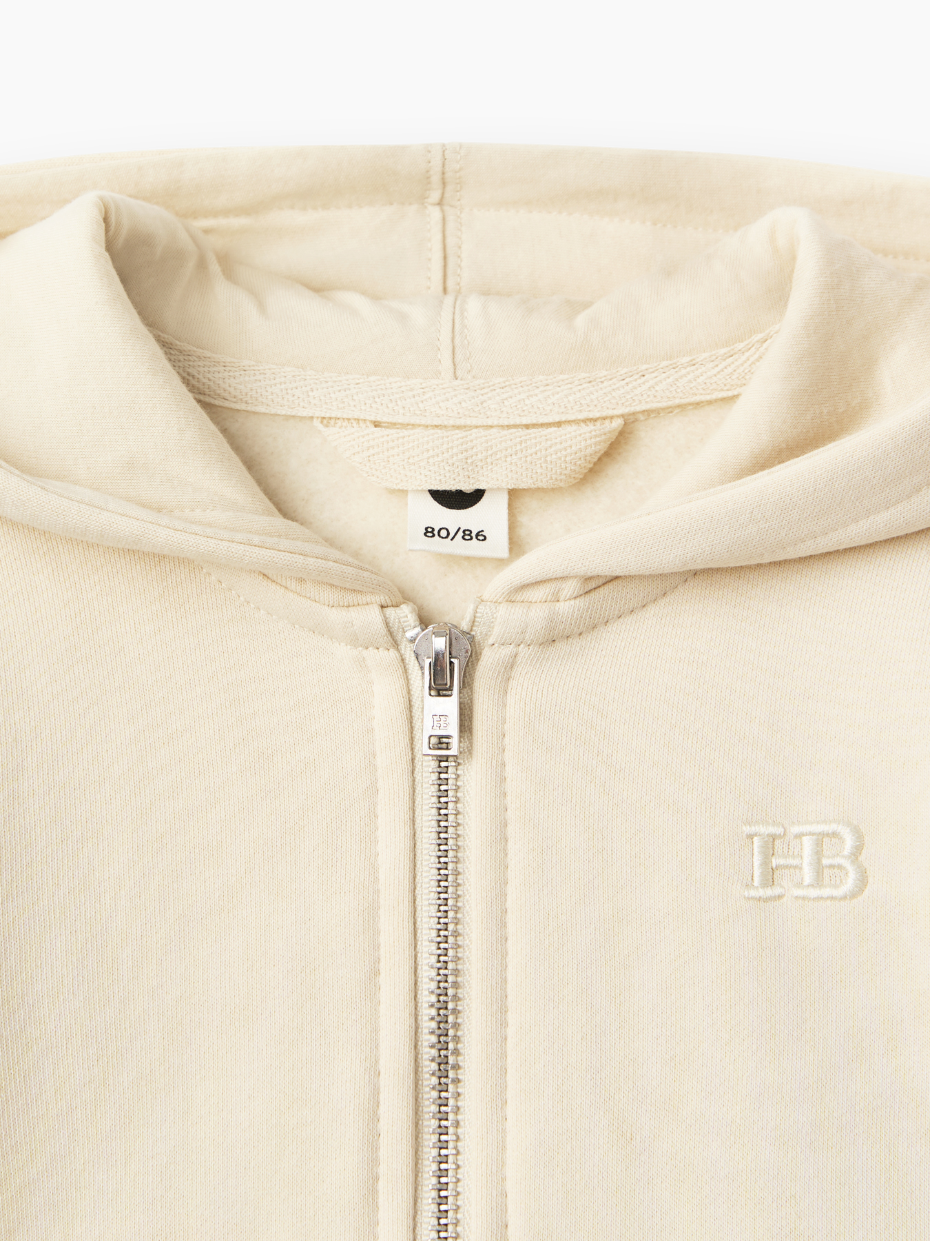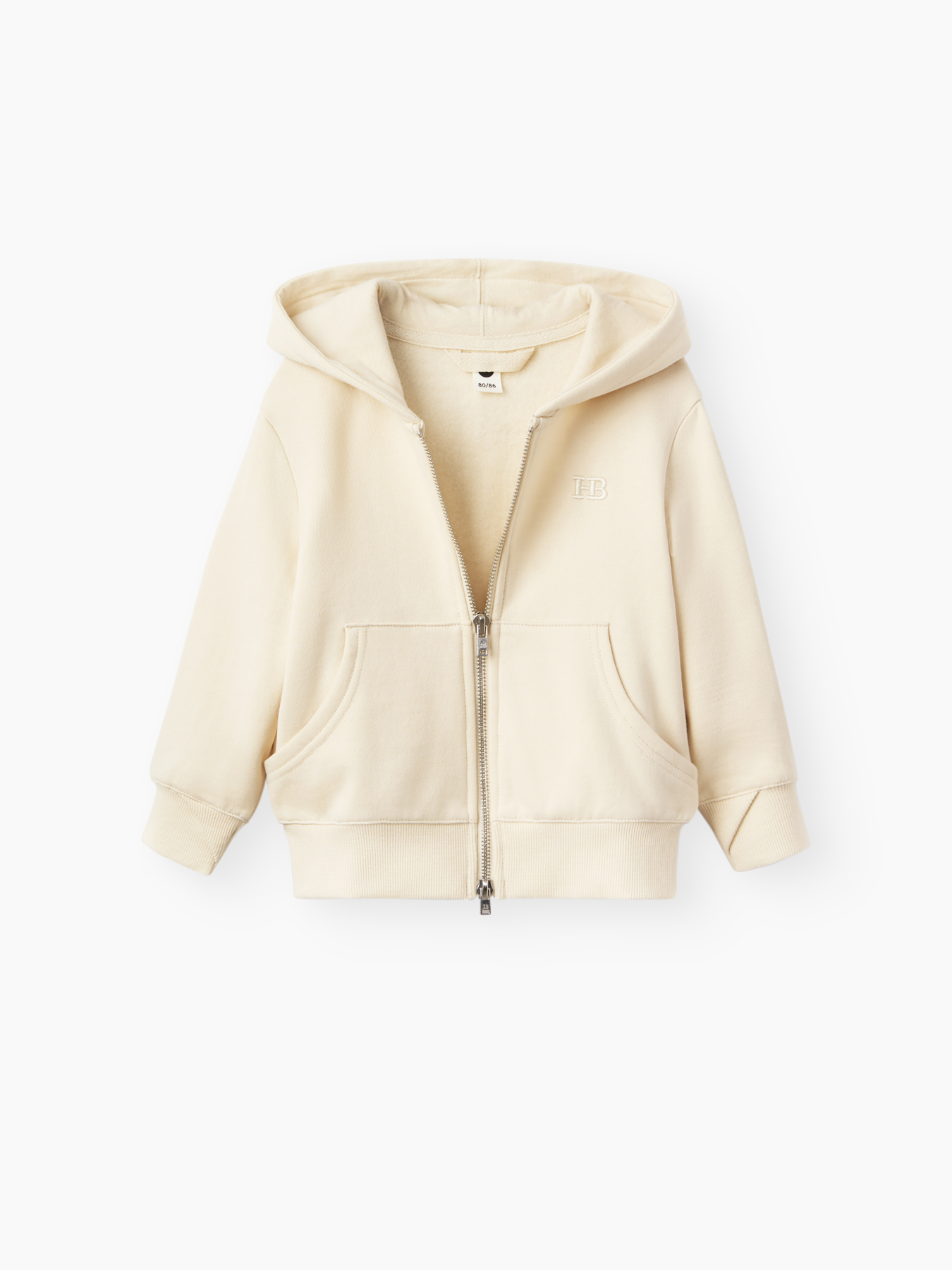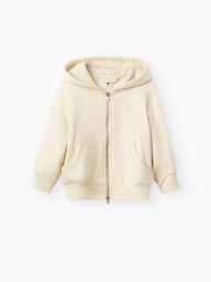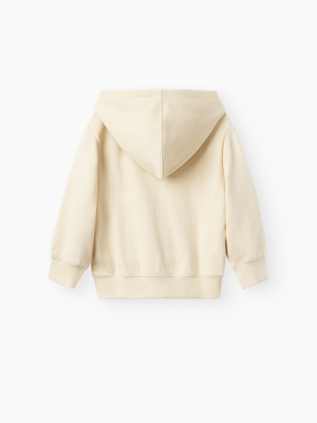 Толстовка на молнии позволит каждый день создавать новые многослойные образы. Изделие легко надевать и снимать: понравится детям, которые испытывают дискомфорт от вещей с плотной горловиной. Манжеты на рукавах и резинка по низу изделия защитят от ветра. В накладные карманы спереди можно спрятать руки. Капюшон не спадает и помогает дополнительно утеплиться. Спущенная линия плеча обеспечивает свободную посадку.