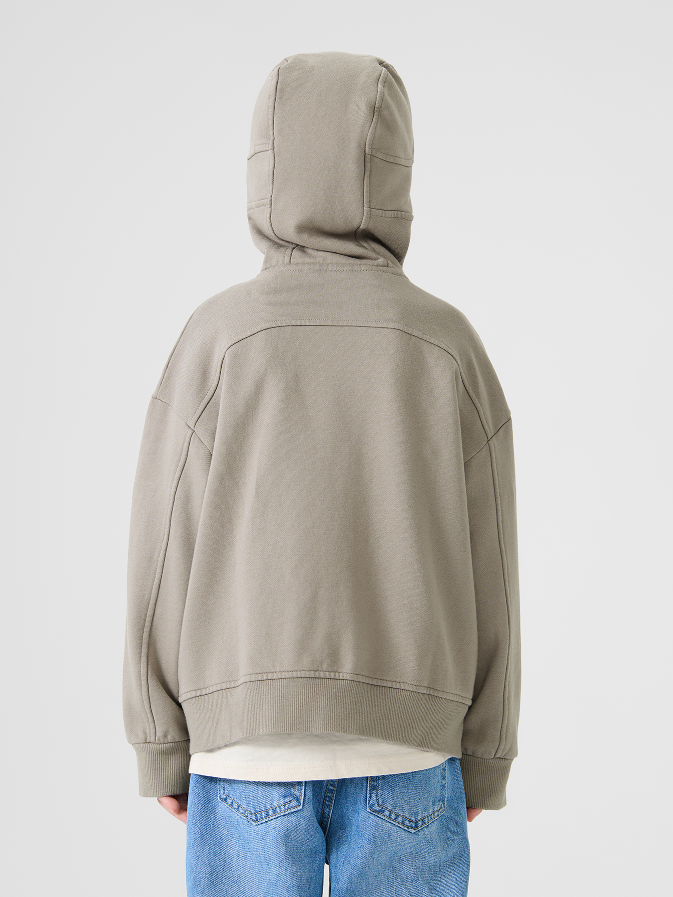 Толстовка для детей станет отличным дополнением гардероба. Стильный худи с капюшоном подходит как для мальчиков, так и для девочек. Выполненная в стиле оверсайз, одежда идеально впишется в повседневный образ любого ребенка. Выполнена из 100% хлопка. Такой материал обеспечивает мягкость и безопасен для кожи, к тому же хлопковая ткань «дышит», так что ребенок не запарится во время активных игр на улице. Простая застёжка - молния позволяет быстро одеваться и раздеваться, что делает кофту удобной в использовании для маленьких детей. Глубокий капюшон защитит уши от ветра, а его стильный фасон с высоким воротом убережет шею от весенней непогоды. Практичные боковые карманы - кенгуру дают возможность хранить мелочи или согреть руки. Элементы дизайна выполнены в гранж - стиле, что добавляет оригинальности. Длинные рукава с манжетами на резинке имеют отверстие для пальчика - дополнительный способ защиты от весенней прохлады. Толстовка подойдёт маленьким детям для создания стильного образа в садике или на прогулке. Однотонный цвет делает кофту универсальной и помогает легко сочетать с другими элементами гардероба. Толстовка на молнии - это отличный вариант для весны и демисезона.