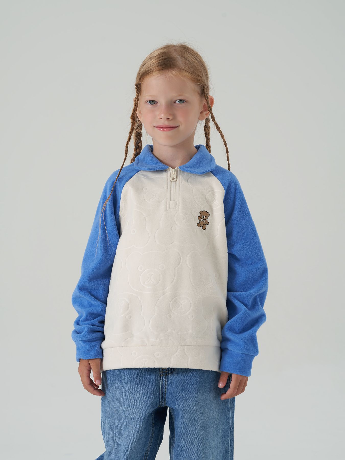 Джемпер флисовый модель «поло» детский blue