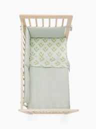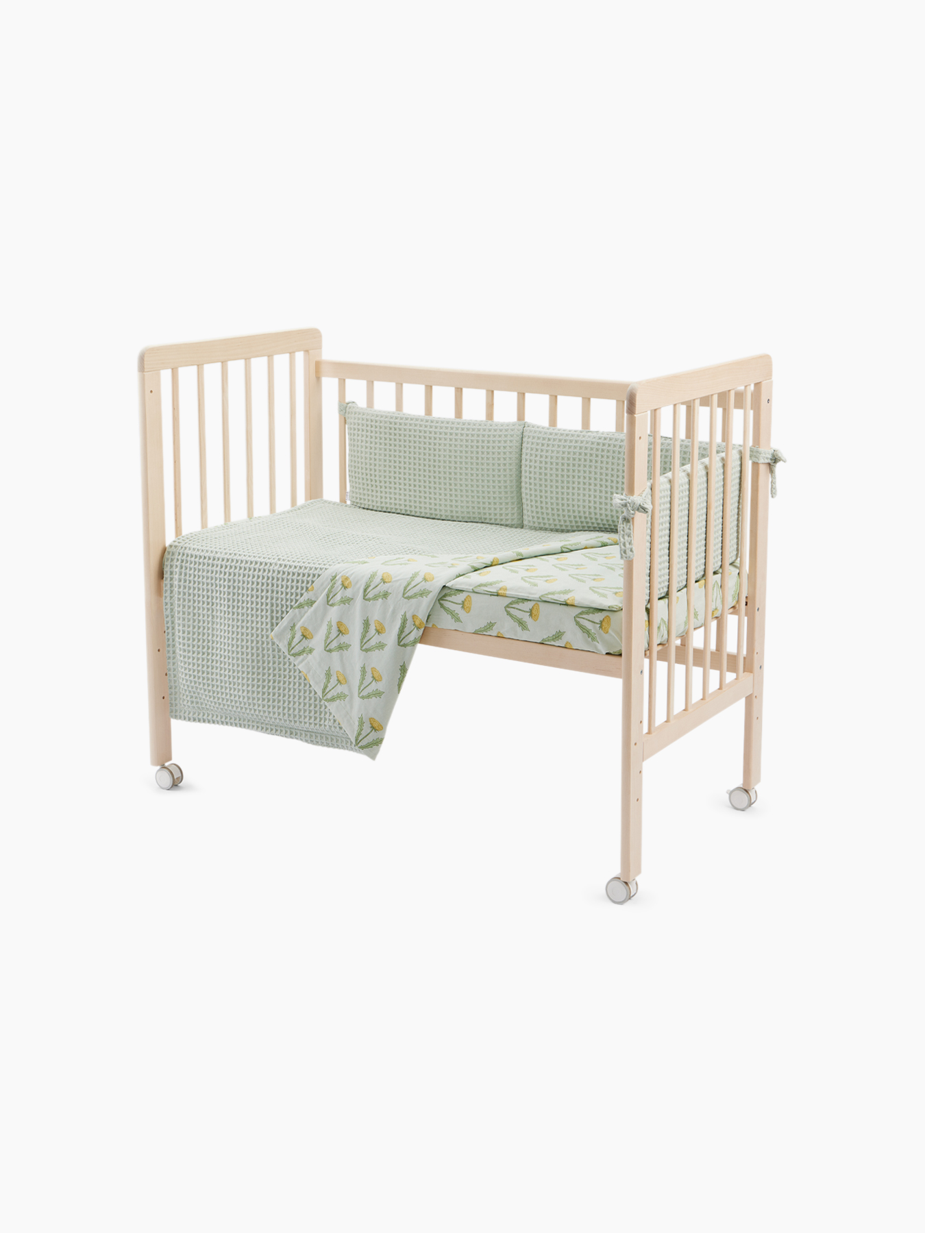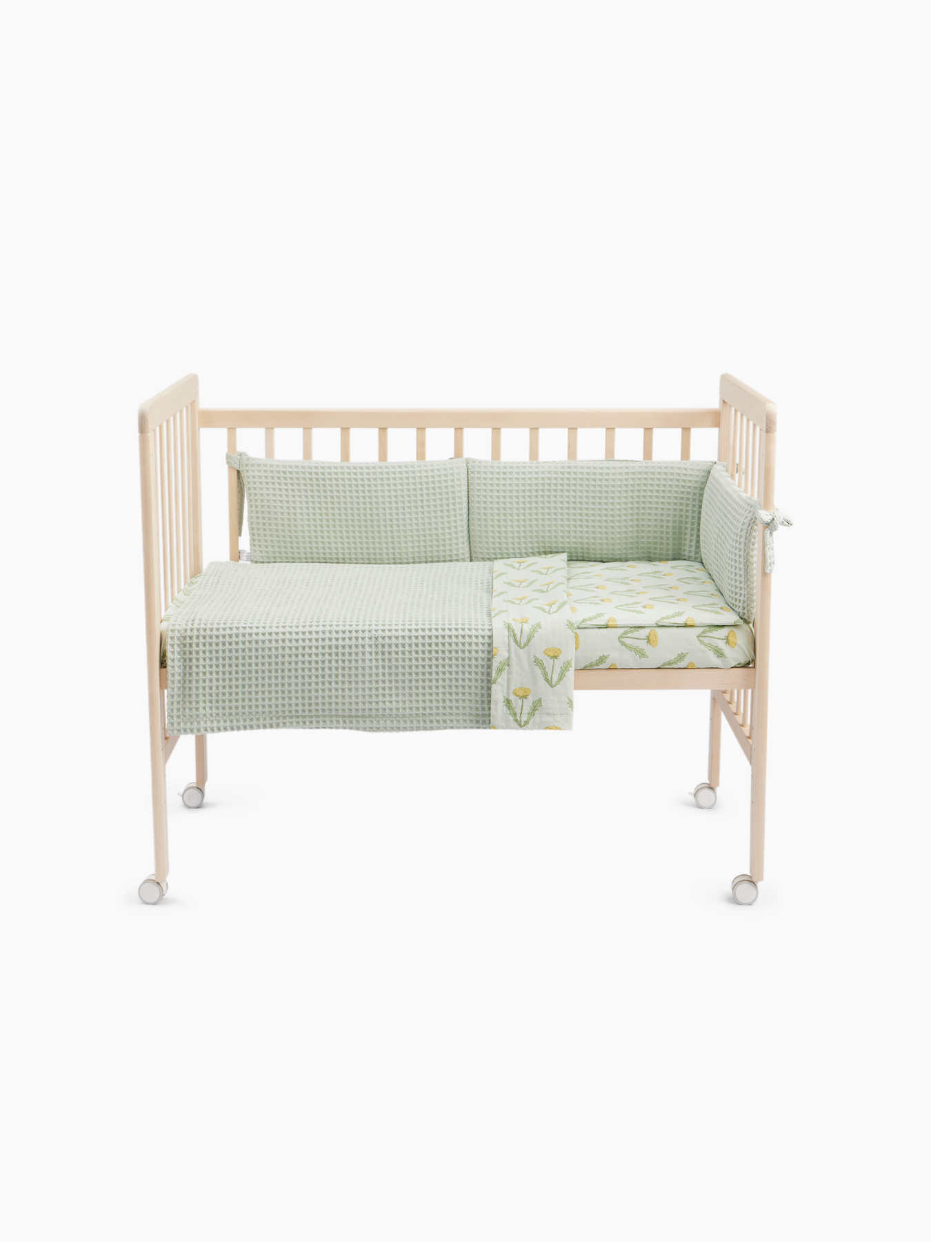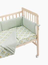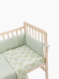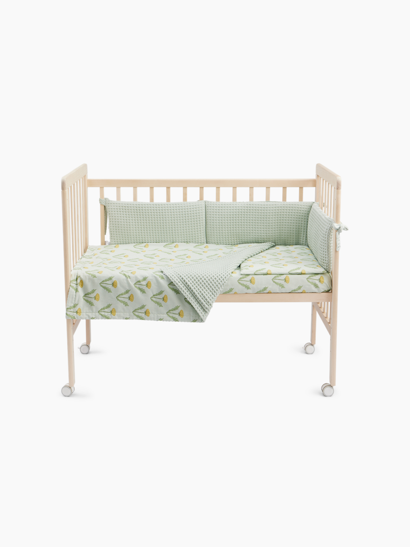 Бортик в кроватку необходим для безопасности и комфорта малыша. Мы создали мягкий и лёгкий бортик с безопасным плотным наполнителем, чтобы защитить кроху от травм, ушибов и застревания в перегородках. Выполнен из 100% хлопка. Натуральный материал гигроскопичен, не нагревается в жару и сохраняет тепло в холодное время. Наполнитель – 100% полиэфир – гибкий, упругий, дышащий и хорошо переносит стирку. Бортик надёжно крепится к стенкам с помощью завязок.
