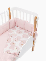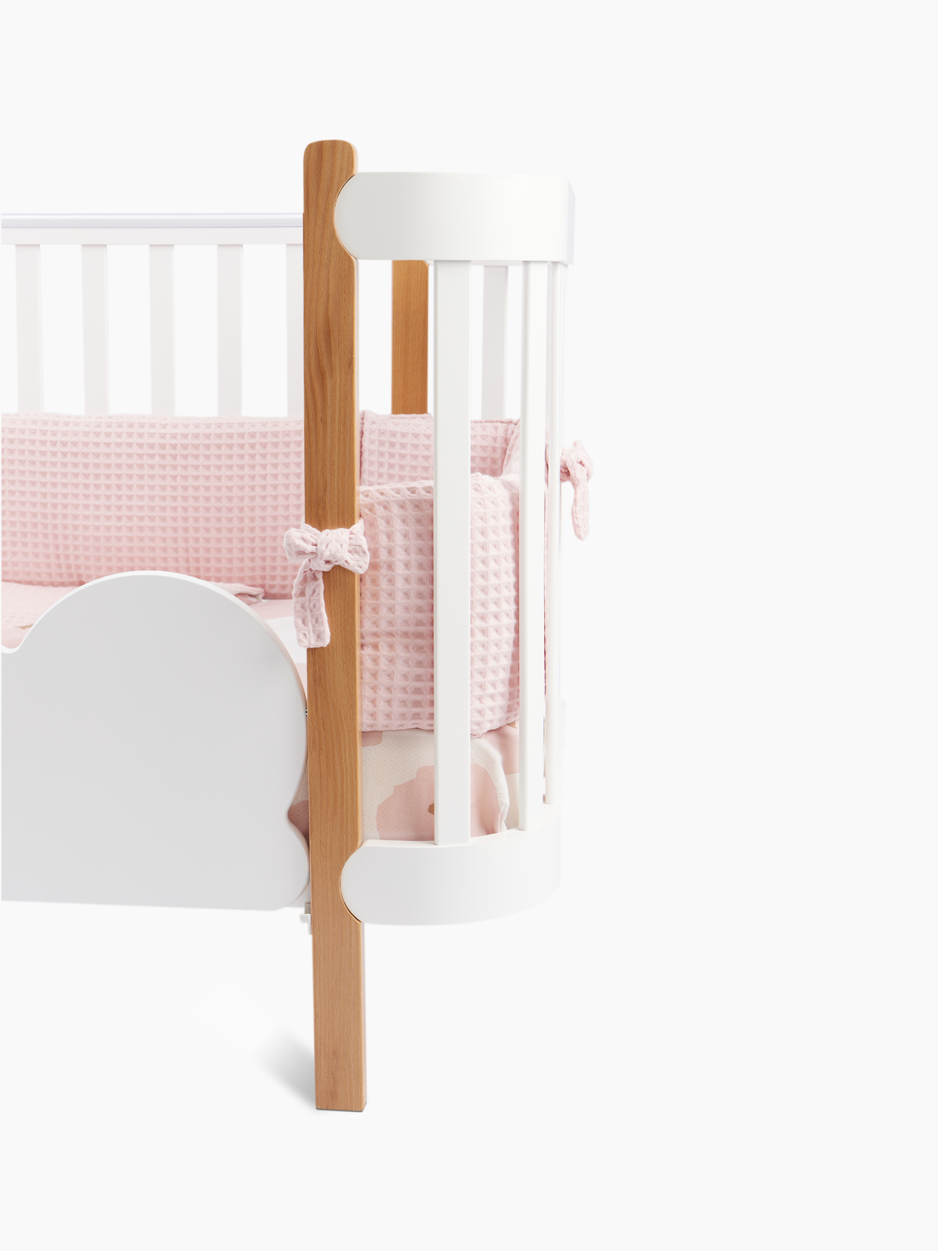 Бортик в кроватку необходим для безопасности и комфорта малыша. Мы создали мягкий и лёгкий бортик с безопасным плотным наполнителем, чтобы защитить кроху от травм, ушибов и застревания в перегородках. Выполнен из 100% хлопка. Натуральный материал гигроскопичен, не нагревается в жару и сохраняет тепло в холодное время. Наполнитель – 100% полиэфир – гибкий, упругий, дышащий и хорошо переносит стирку. Бортик надёжно крепится к стенкам с помощью завязок.