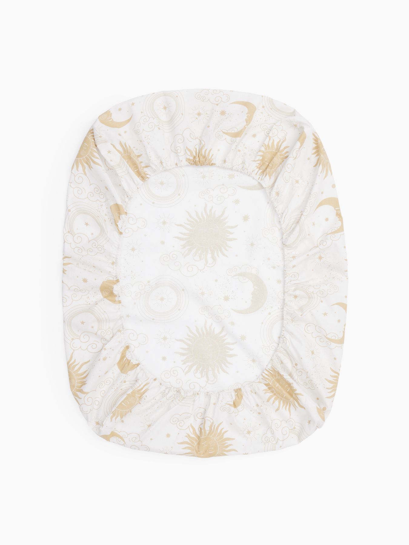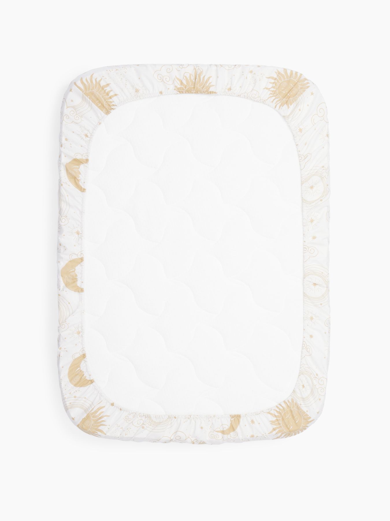 Простыня на резинке позволит сладко и безмятежно спать – поверхность постели останется идеально гладкой даже, если ребенок активно ворочается. Сшита из нежного поплина. В составе материала натуральный хлопок. Ткань очень мягкая и прочная, дарит малышу непревзойденный комфорт.