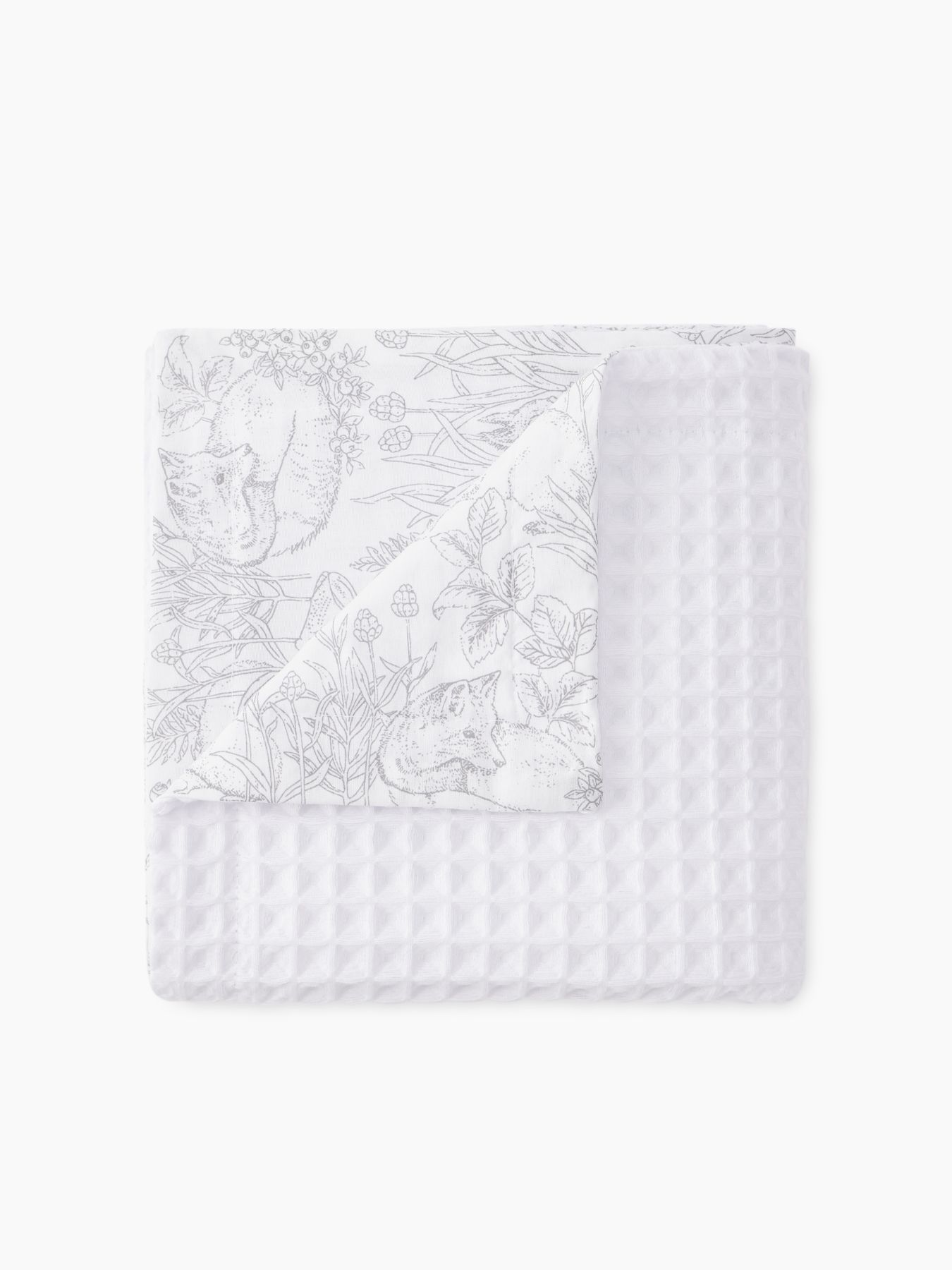 В стильный двусторонний плед можно завернуть младенца на выписку из роддома. Изделие станет отличной альтернативой легкому одеялу для кроватки и коляски. Плед можно использовать вместо матрасика или пеленки, чтобы поиграть с малышом или переодеть его. Компактное покрывало не займет много места в маминой сумке, потому его удобно брать на прогулки. Обе стороны сшиты из 100% натуральных хлопковых тканей: поплина и вафельного полотна. Вафельное полотно отлично впитывает влагу и быстро сохнет, потому может заменить малышу полотенце. Нежные ткани приятны коже и не электризуются.