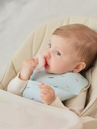 Силиконовый нагрудник с кармашком для улавливания пищи - незаменимая вещь при кормлении малыша. Максимум комфорта для ребёнка и минимум уборки для мамы. Компактный и удобный в использовании для дома, детского сада, поездок и прогулок. Не требует стирки, достаточно помыть его с мылом или протереть салфеткой. Кармашек для улавливания пищи отлично защищает одежду от загрязнений, а регулируемая по длине застежка подойдет для малышей разного возраста и надёжно зафиксирует слюнявчик.