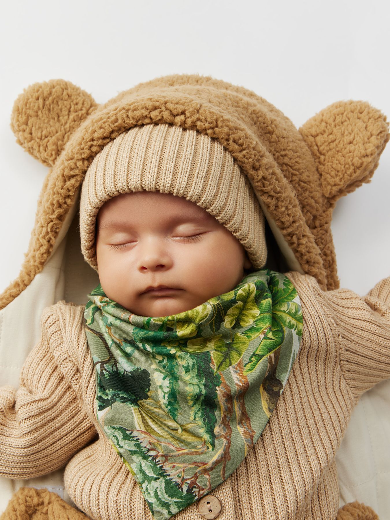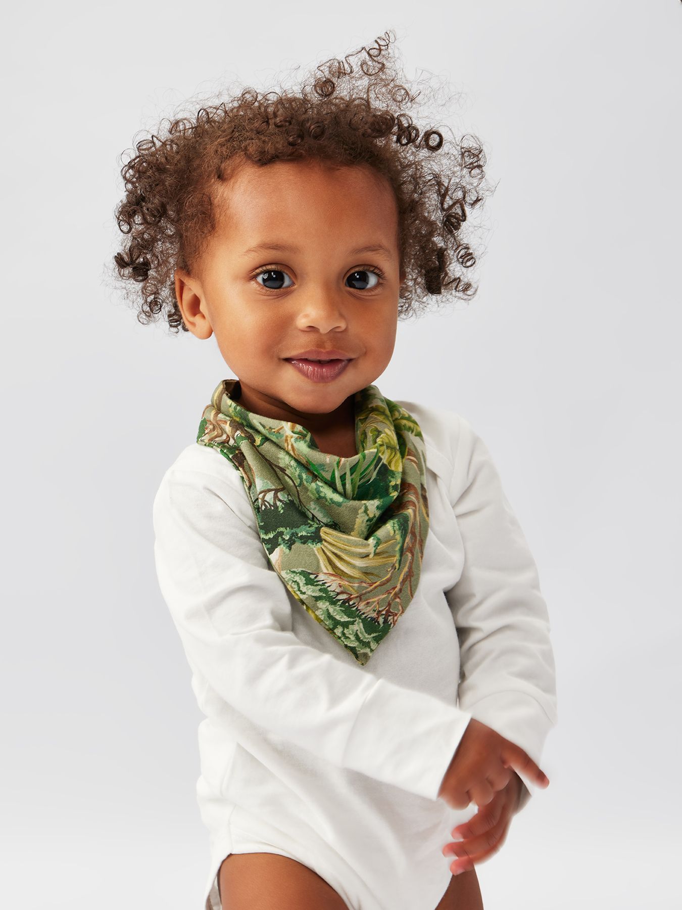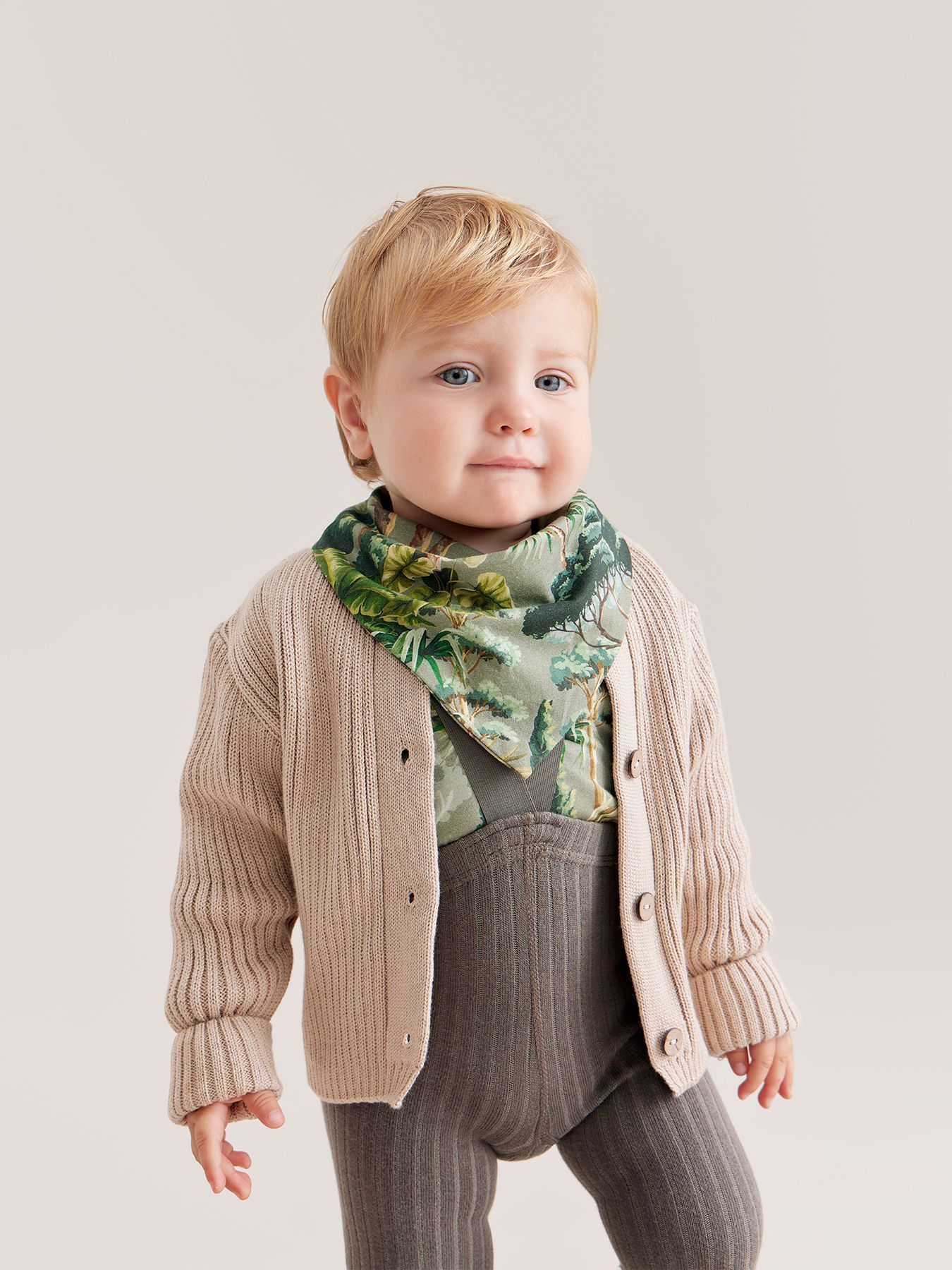 Нагрудный фартук станет яркой деталью образов новорожденных и детей постарше. Сшит из мягкого материала смеси хлопка и эвкалиптового волокна. Младенцам можно повязать его как слюнявчик, а маленьким модникам – как стильный шарф или дерзкую бандану.