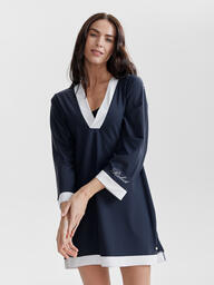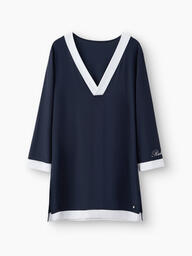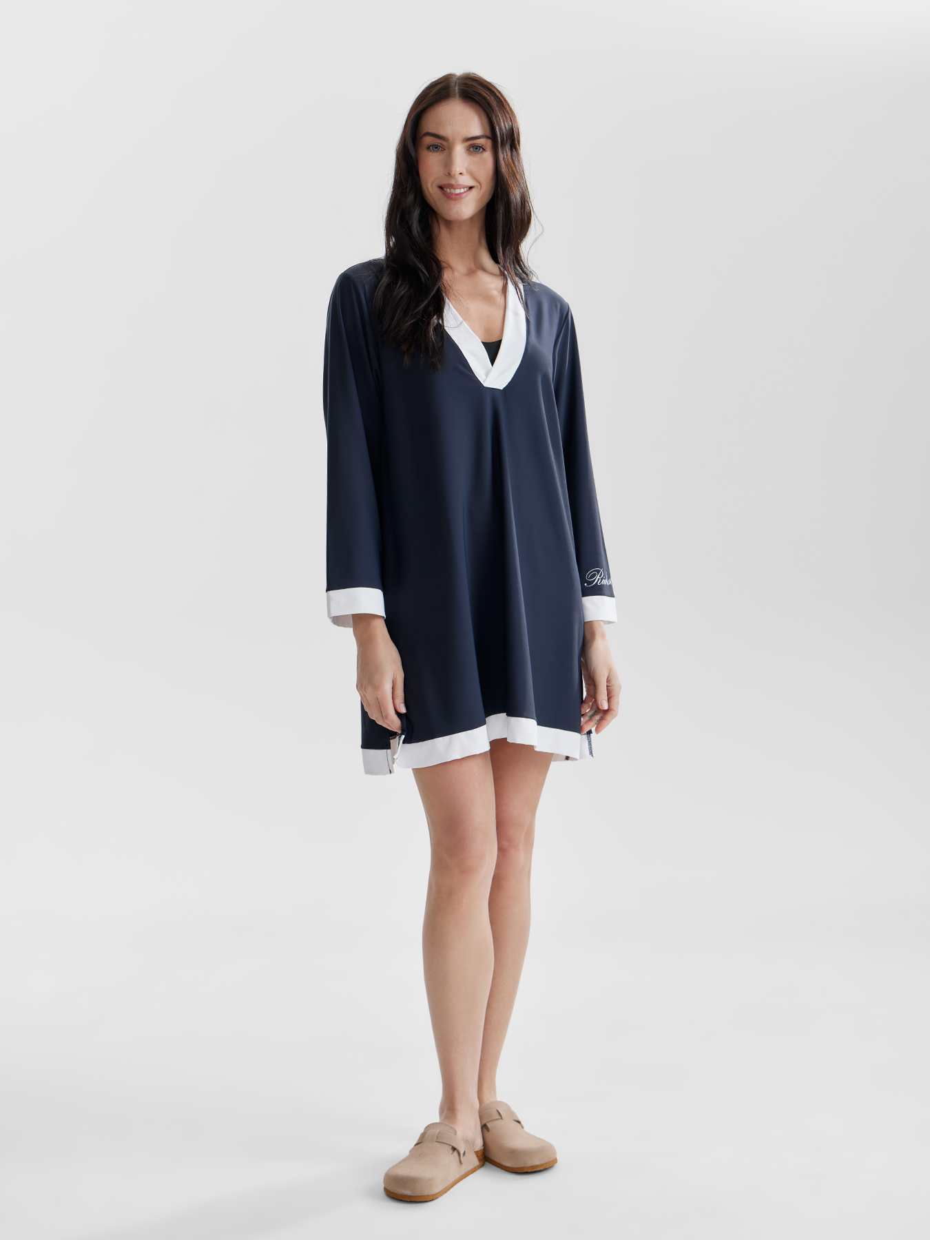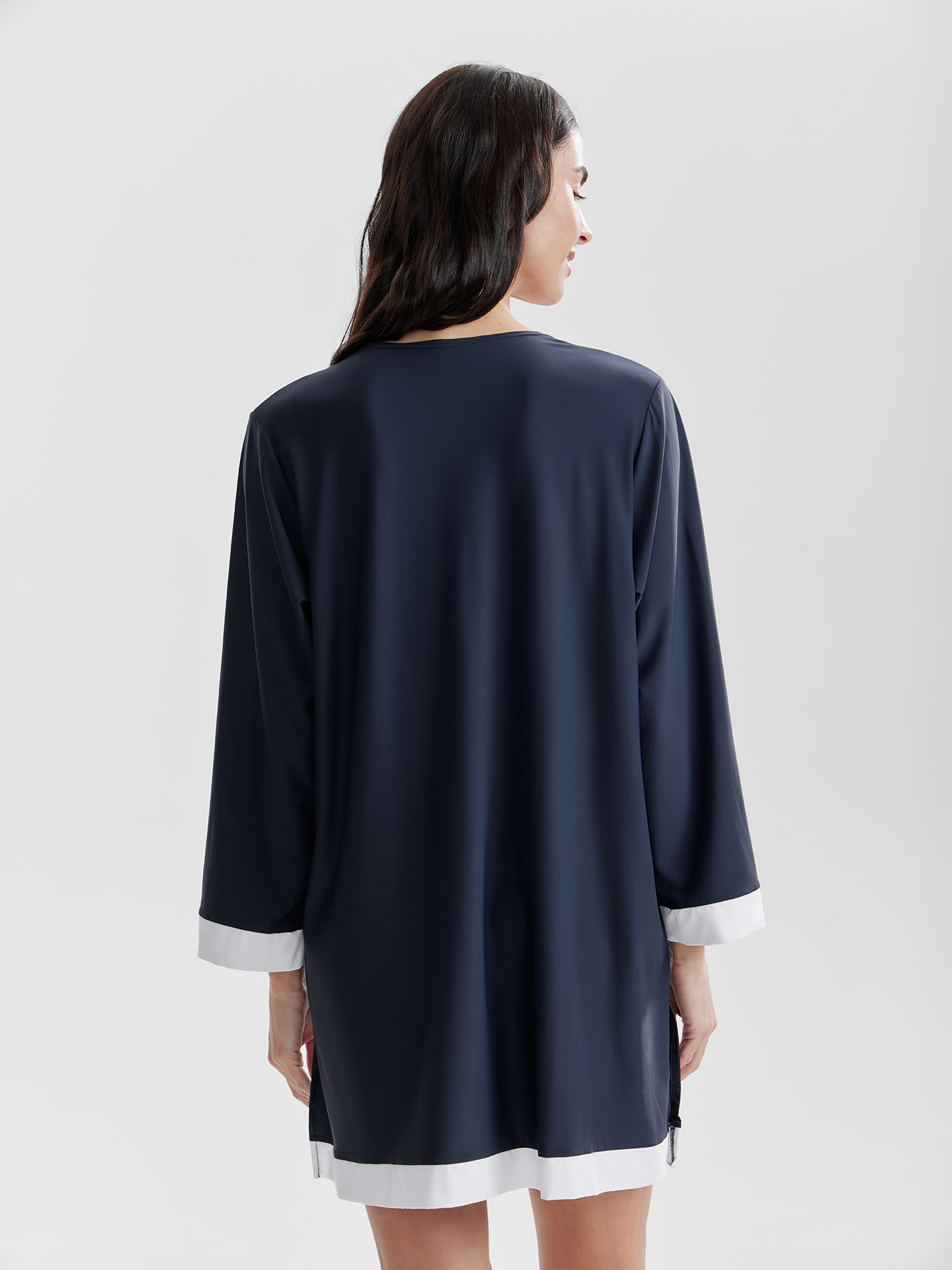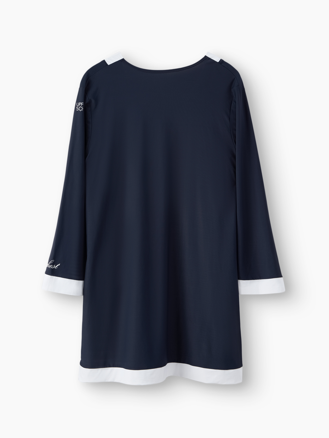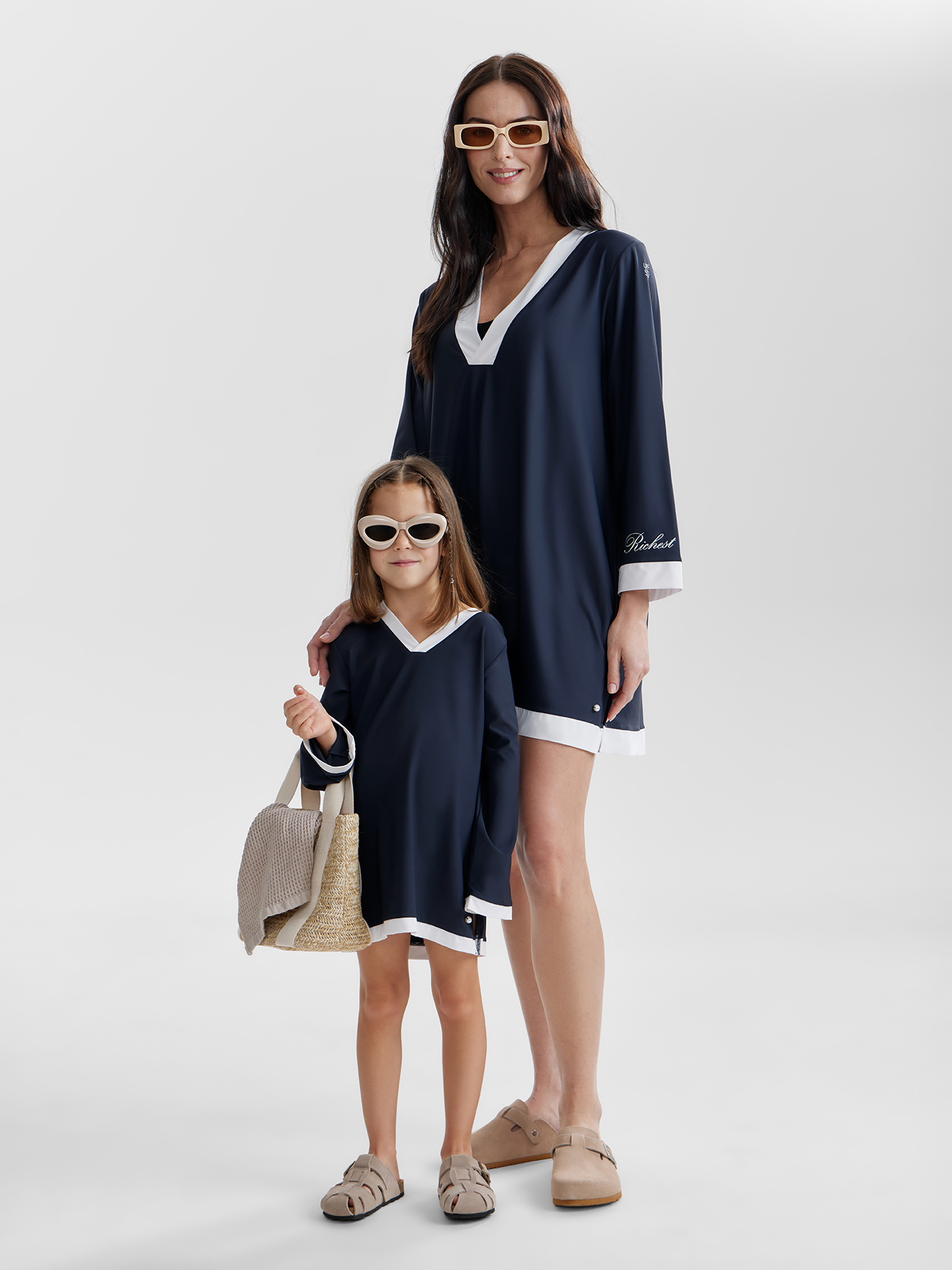 Купальная футболка с длинными рукавами защитит от агрессивных солнечных лучей и поможет избежать солнечных ожогов. Можно играть с малышом, плавать и не беспокоиться о нанесении солнцезащитного крема. Благодаря V-образному вырезу и актуальному крою футболка выглядит стильно. Базовые цвета позволяют легко сочетать футболку с плавками.