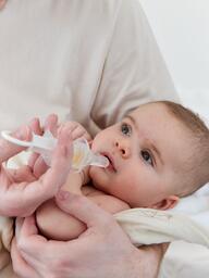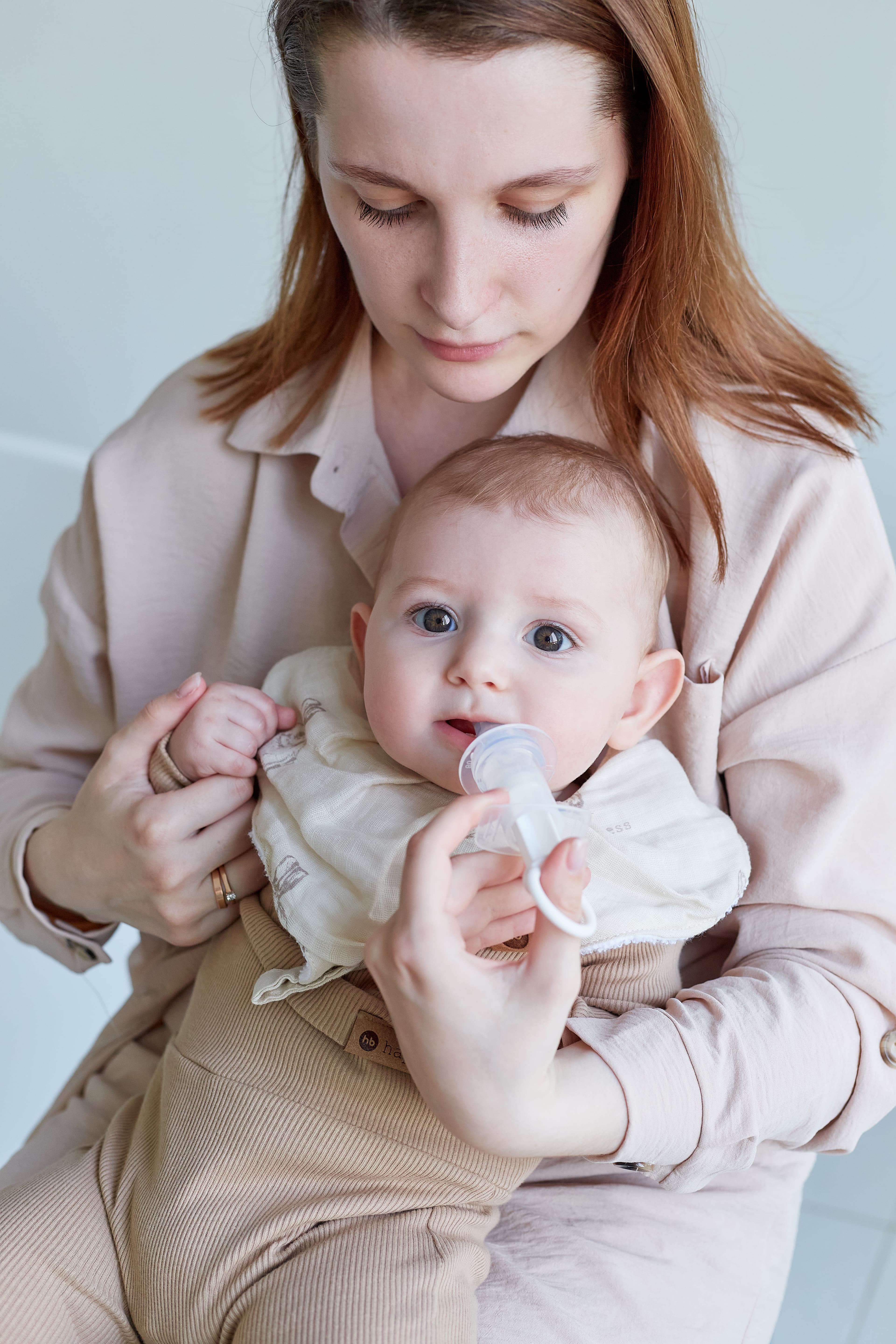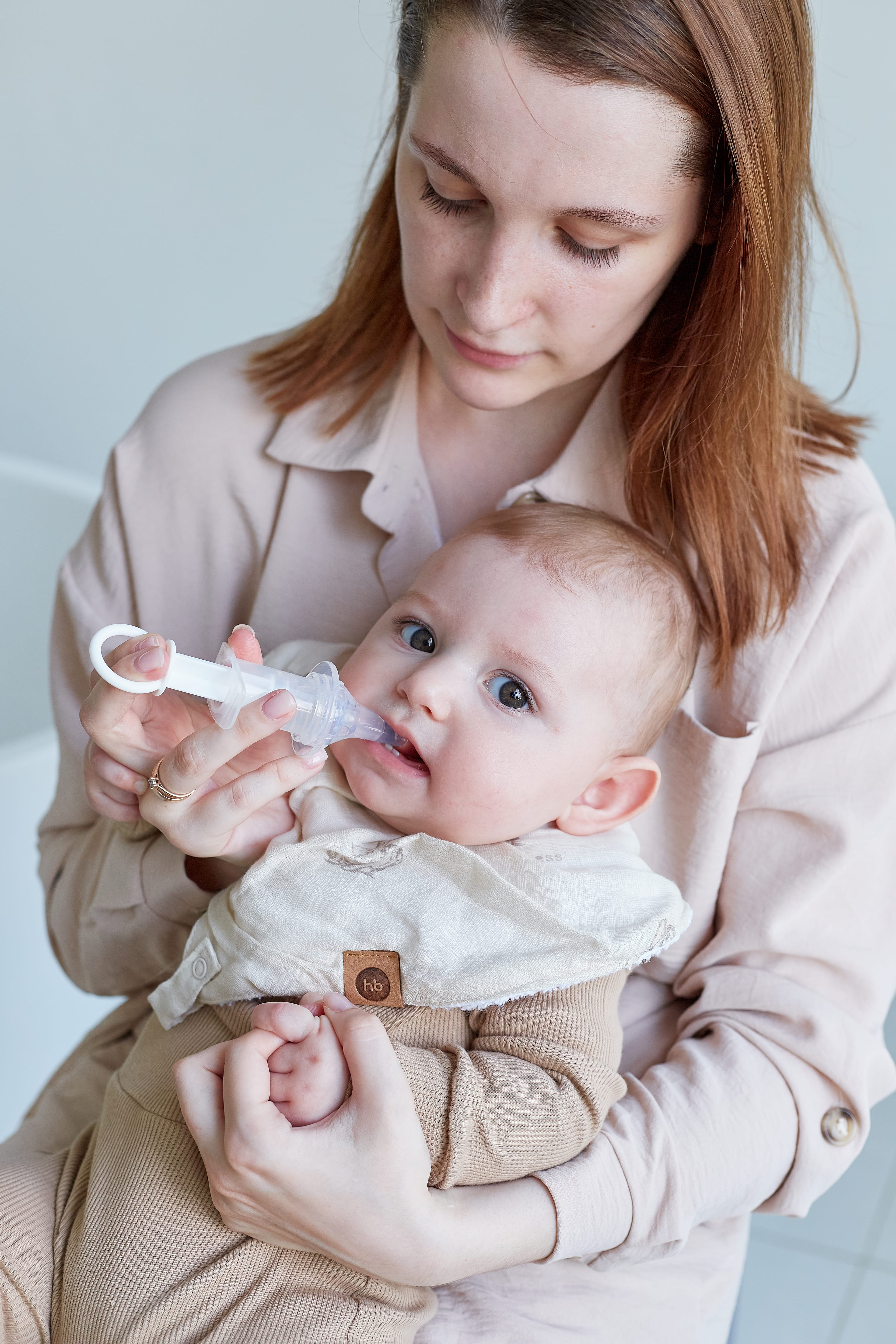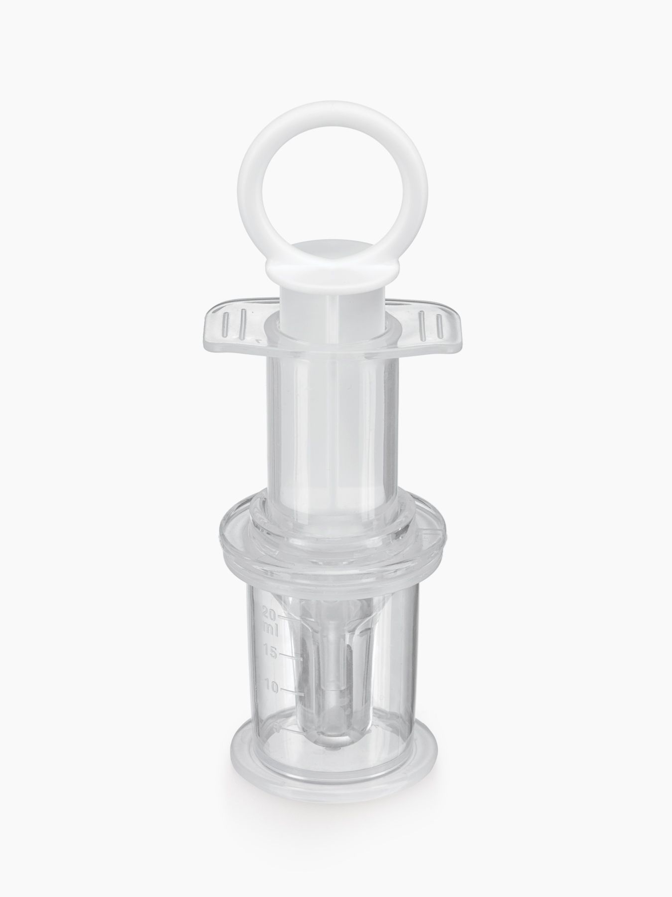 Дозатор поможет быстро и легко отмерить необходимую для малыша порцию. Содержимое дозатора можно аккуратно ввести, пока кроха будет увлеченно жевать силиконовый наконечник. Косые отверстия направляют жидкость в разные стороны, избегая прямого попадания в горло, чтобы малыш случайно не подавился. Мерный стаканчик объемом 20 мл. поможет отмерить большее количество жидкости, которое необходимо разделить на несколько порций.