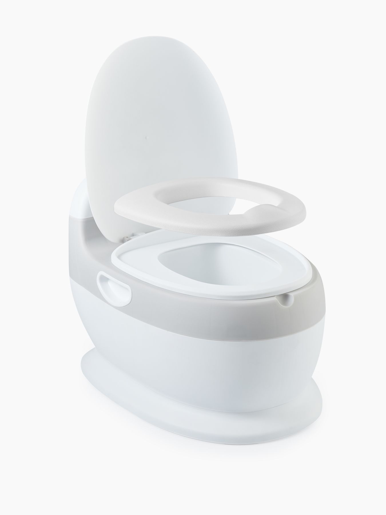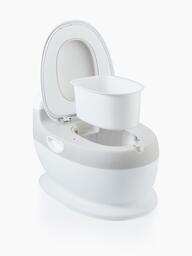 Детский горшок TOLLY в форме унитаза обеспечит малышу максимальный комфорт. Спинка поддерживает, сохраняя правильную осанку, бортик спереди защитит от капель и брызг, а мягкий ободок обеспечит комфортную посадку. После нажатия кнопки на бачке слышится звук настоящего слива воды, что точно заинтересует малыша и позволит ему ощутить себя взрослым. "Унитаз" имеет легко вынимающуюся емкость-горшок, которую просто чистить. Благодаря TOLLY переход от подгузников к горшку станет приятней и комфортней.