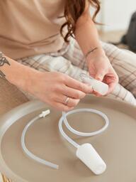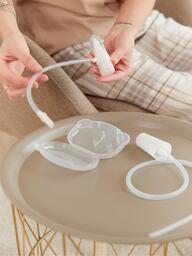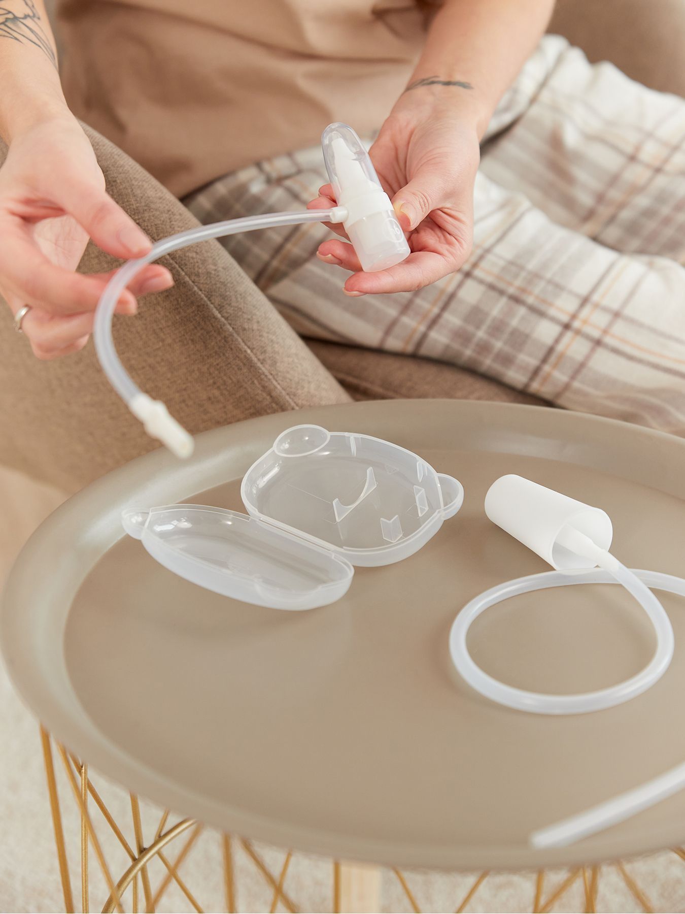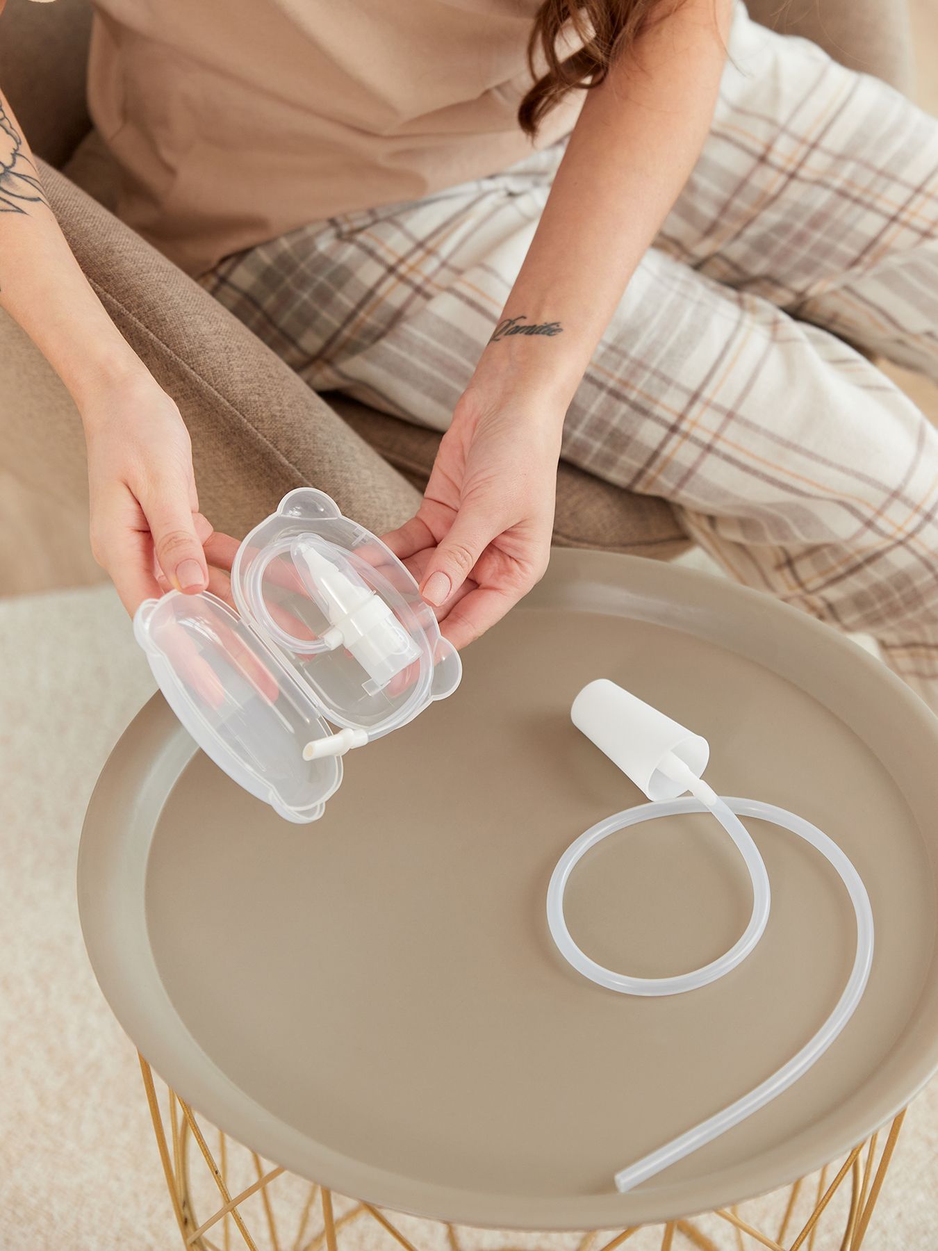 Адаптер позволяет превратить обычный аспиратор в вакуумный. При помощи трубки соедините устройство с переходником для трубки пылесоса. Отрегулируйте мощность на минимум или откройте заглушку на шланге пылесоса. Вставьте наконечник аспиратора в носовое отверстие малыша – свободное дыхание вернётся ребёнку за секунды. Вакуумный аспиратор создаёт равномерный поток воздуха, позволяет быстрее и эффективнее совершить гигиеническую процедуру, не доставляя малышу дискомфорта. Оптимальная длина съёмной трубки (60 см) удобна для родителей. Адаптер легко разбирать и мыть.