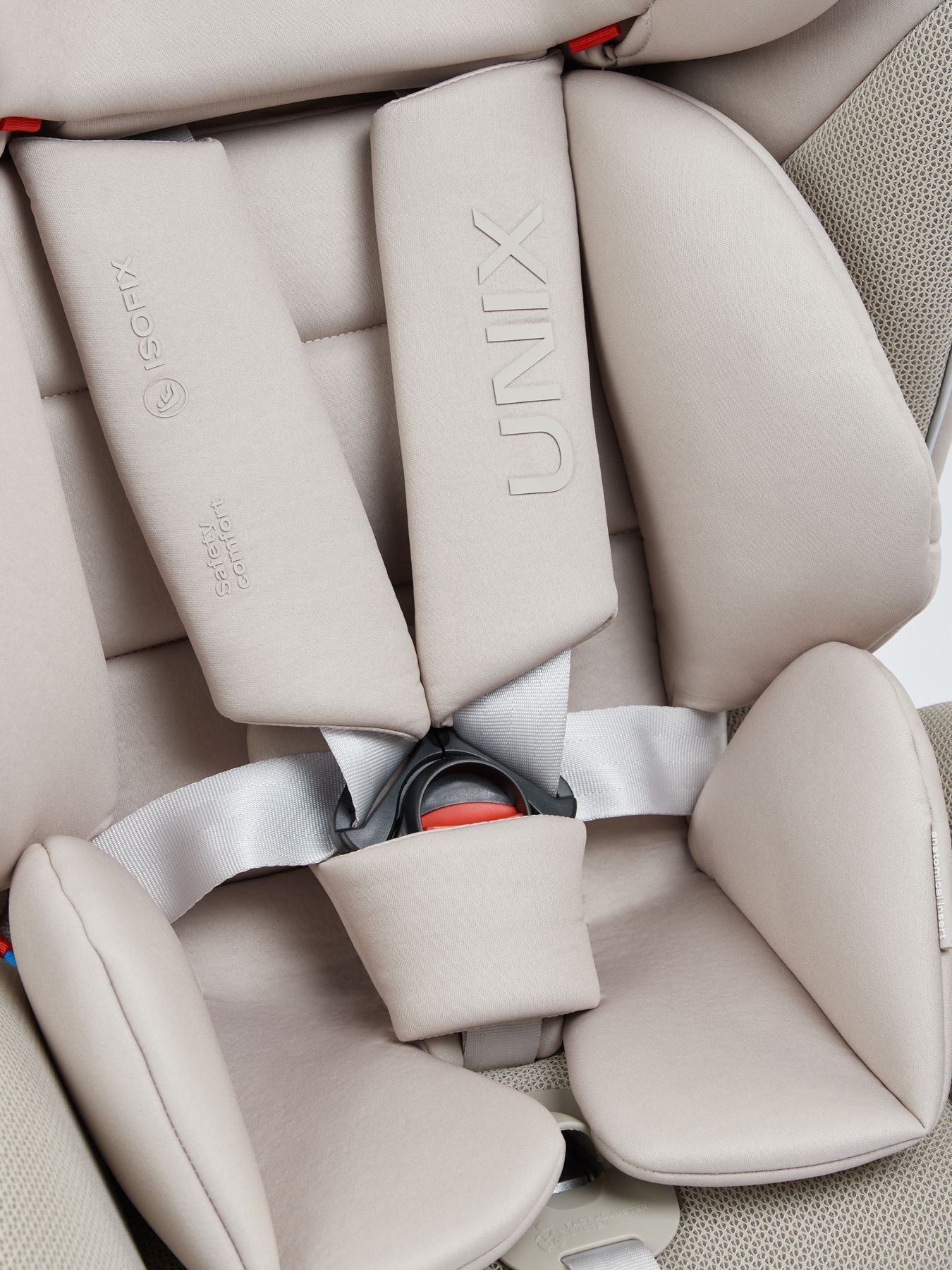 UNIX - универсальное автокресло для детей с самого рождения и до 12 лет, которое имеет возможность установки как с помощью трехточечных ремней безопасности автомобиля, так и с помощью системы ISOFIX. Различные варианты установки и поворотная база предлагают широкие возможности для наиболее удобного и безопасного расположения в любом автомобиле.