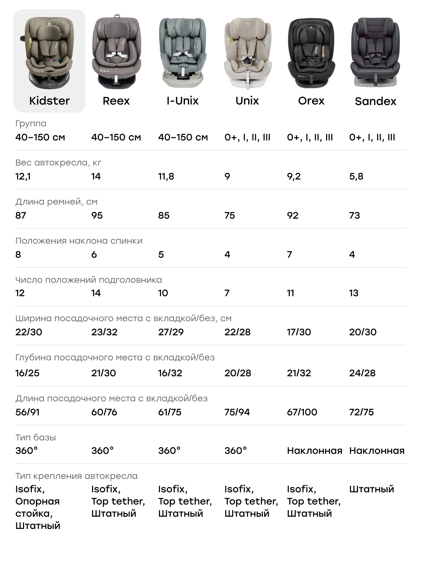 Детское автокресло KIDSTER — идеальный выбор для родителей, ценящих безопасность, удобство и долговечность. Соответствие европейскому стандарту ECE R129/04 гарантирует надежную защиту благодаря системе боковой амортизации и пятиточечным ремням с мягкими накладками. Автокресло подходит для детей от 0 лет, обеспечивая комфорт с первых месяцев жизни и до достижения роста 150 см. Ключевая особенность — поворотная база на 360°, облегчающая посадку и высадку малыша. Кресло можно устанавливать лицом или спиной вперед, адаптируя под возрастные этапы развития. Анатомическая подушка с эффектом памяти поддерживает правильную форму головы новорожденного, а регулируемые спинка и подголовник позволяют настроить положение под потребности ребенка. Модель комплектуется системой ISOFIX для быстрой и надежной фиксации в автомобиле. Прочный каркас и износостойкие материалы делают автокресло для новорожденного универсальным решением на несколько лет.