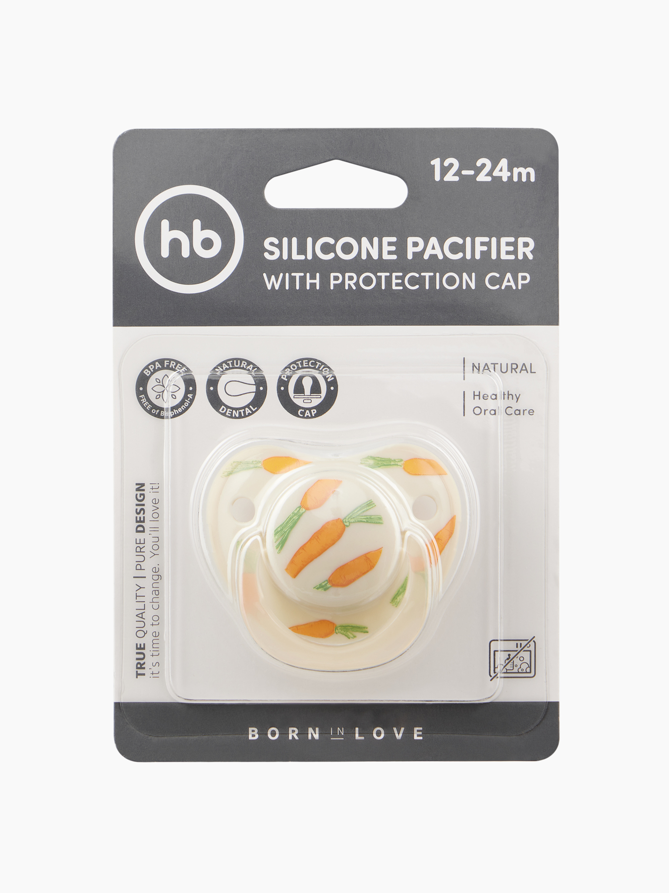Соска-пустышка силиконовая симметричной формы, 12-24 milky carrot
