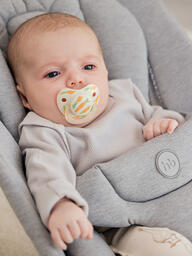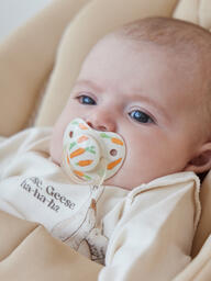 Силиконовая пустышка в форме капли повторяет форму нёба малыша и не мешает развитию его ротовой полости. Вентиляционные отверстия в носогубнике предотвращают сухость кожи. Благодаря колпачку вы можете быть уверены в том, что пустышка всегда будет чистой. Силиконовая пустышка не имеет вкуса и запаха, комплектуется защитным колпачком и подлежит паровой стерилизации.