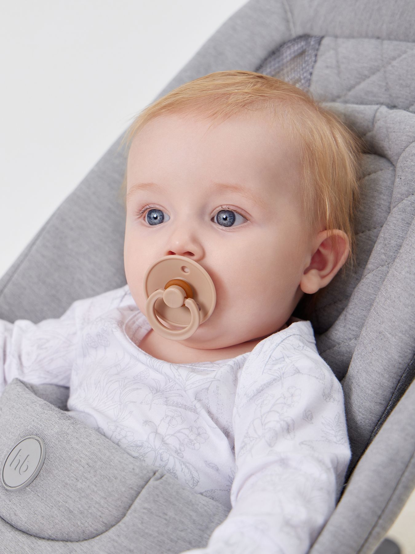 Латексная соска-пустышка изготовлена из природного материала и рекомендована для использования с 6 месяцев. Круглая форма соски успокаивает малыша и прекрасно удовлетворяет сосательный рефлекс, помогая ослабить неприятные ощущения во время прорезывания зубов. Вентиляционные отверстия в нагубнике позволяют избежать раздражения и опрелостей.