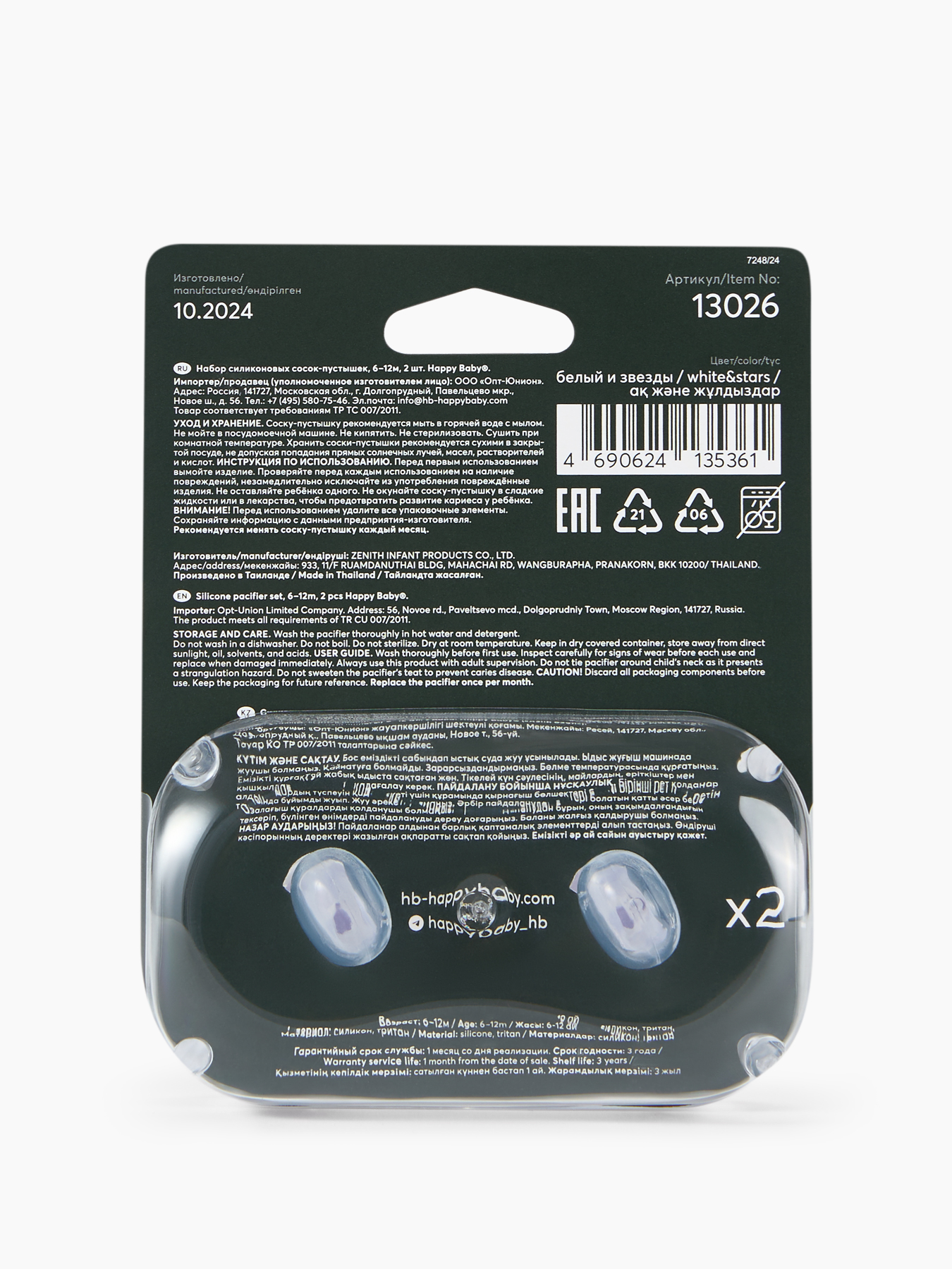 Набор силиконовых сосок-пустышек, 6-12, 2 шт. white&stars