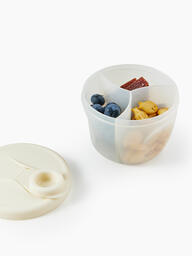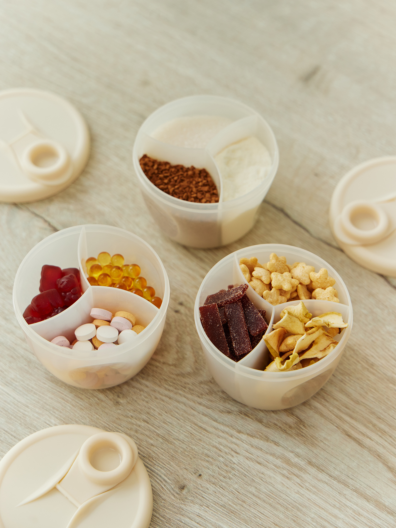 Контейнер незаменим на долгих прогулках и в поездках, обеспечивая герметичное хранение смеси без пересыпания из одного отсека в другой. Надежная конструкция и удобное использование делают его идеальным помощником в заботе о малыше, где бы вы ни находились.