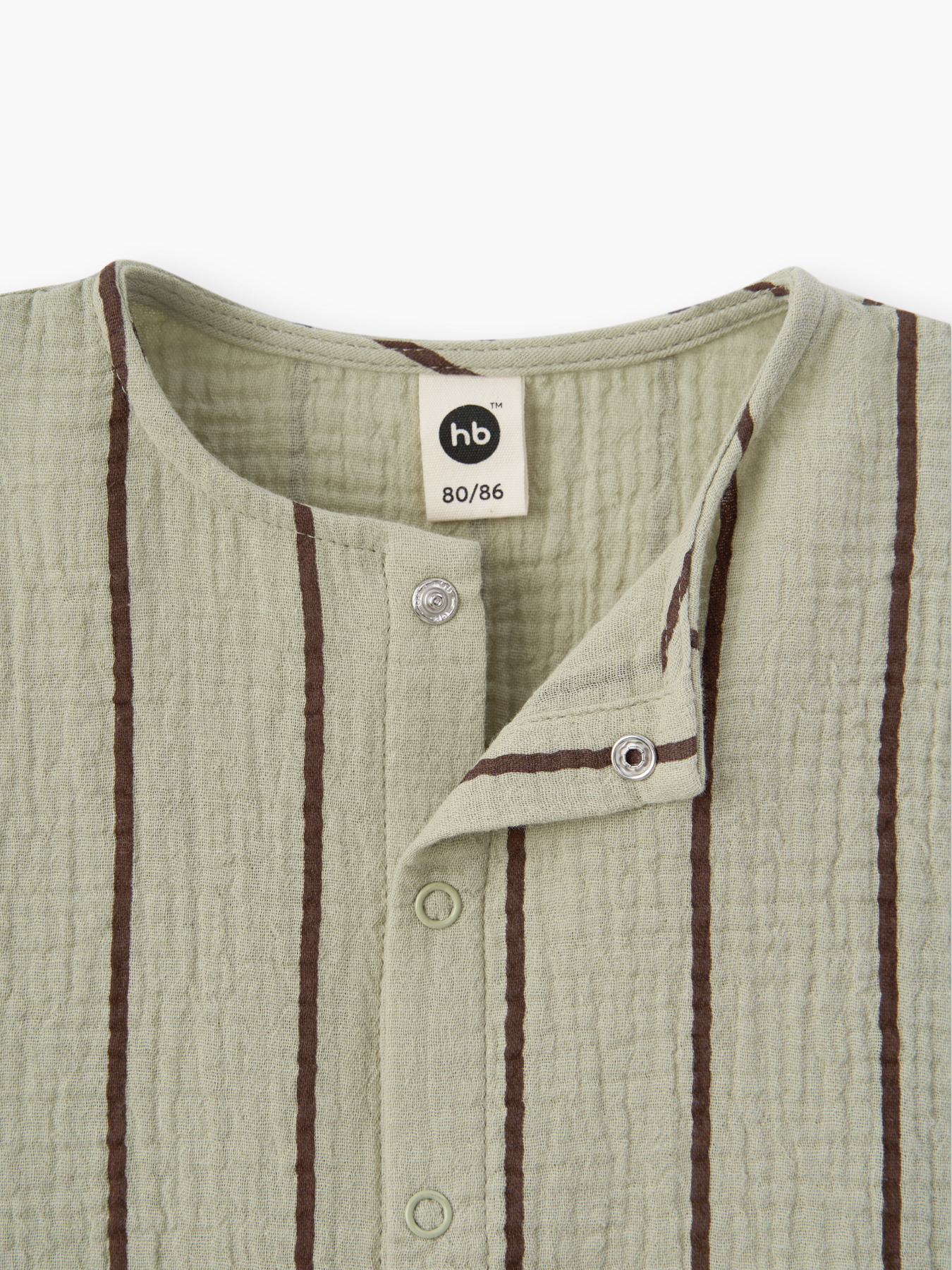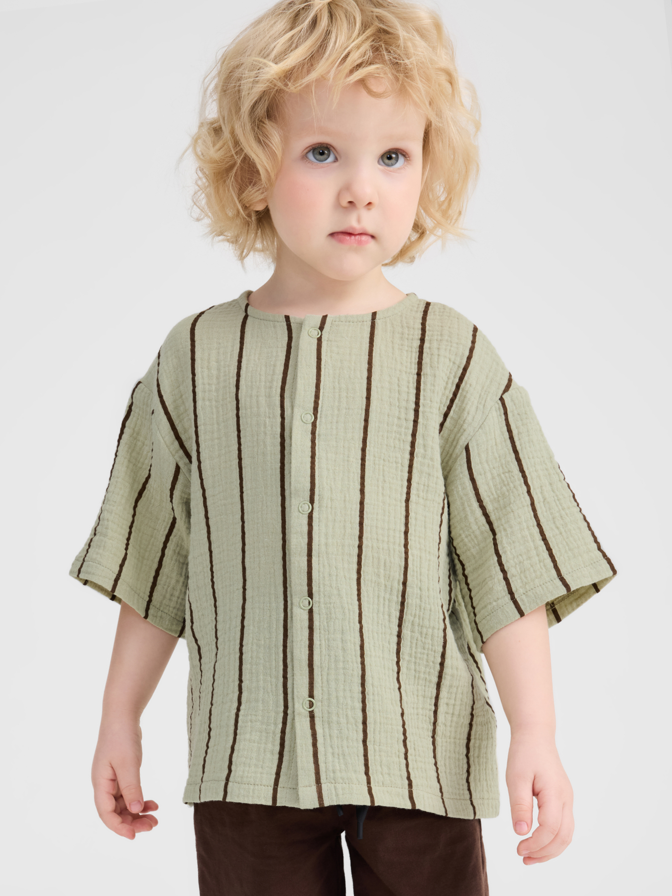 Рубашка для малышей — удобная и стильная модель. Выполнена из мягкого хлопка, обеспечивает комфорт нежной коже ребенка. Классический крой с короткими рукавами и застежкой на пуговицы делает рубашку удобной в использовании, облегчая процесс одевания. Универсальный дизайн и лаконичный стиль позволяют легко сочетать рубашку с любыми элементами гардероба, будь то шорты, брюки или юбки. Подходит для прогулок, детского сада, семейных мероприятий или фотосессий. Благодаря качественному материалу рубашка сохраняет свой вид даже после многократных стирок.