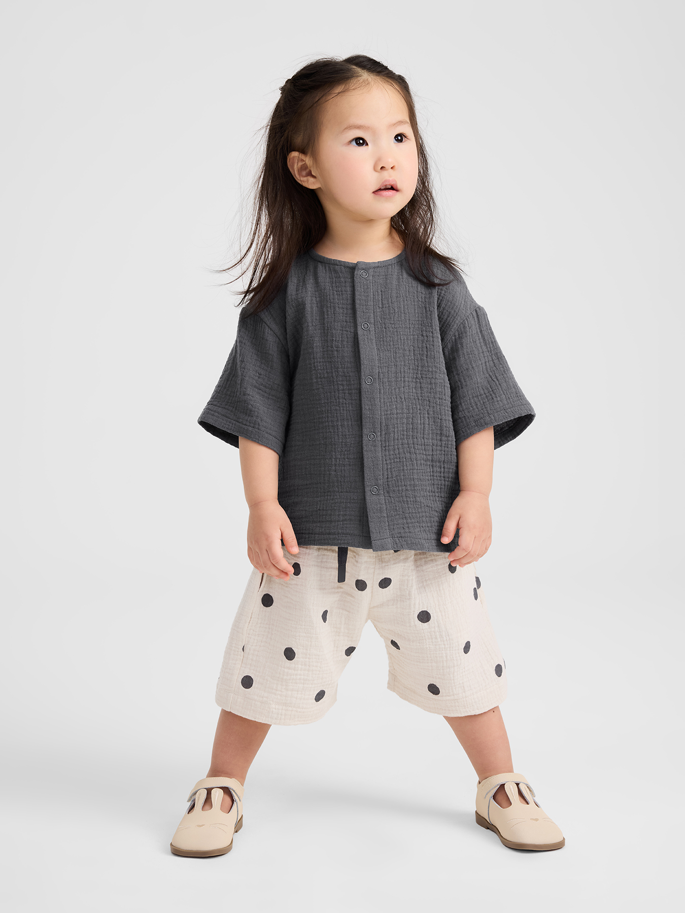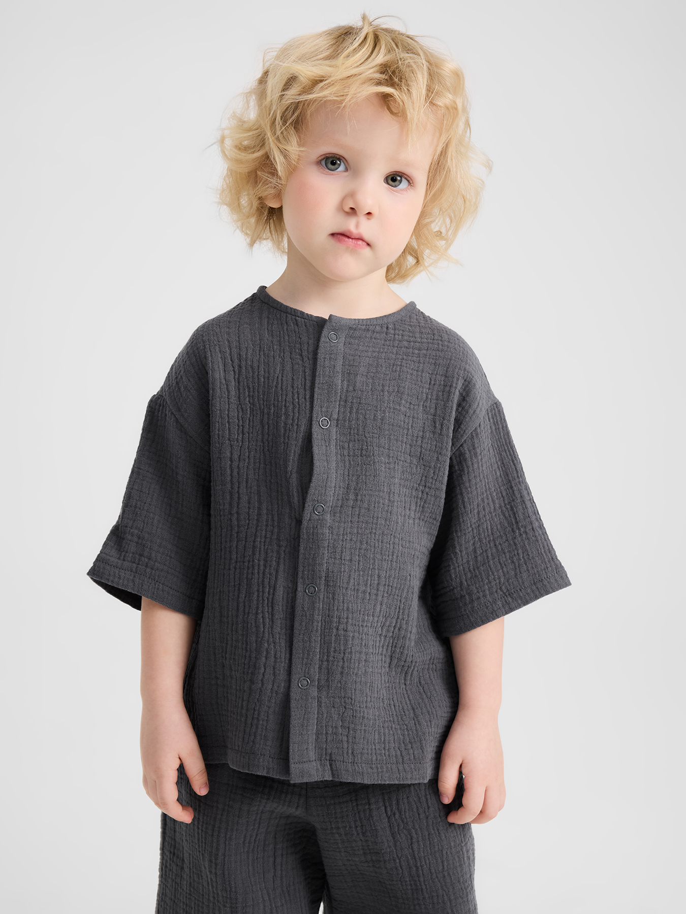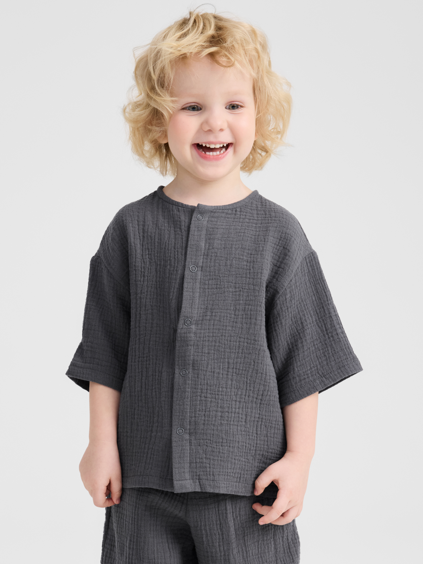 Рубашка для малышей — удобная и стильная модель. Выполнена из мягкого хлопка, обеспечивает комфорт нежной коже ребенка. Классический крой с короткими рукавами и застежкой на пуговицы делает рубашку удобной в использовании, облегчая процесс одевания. Универсальный дизайн и лаконичный стиль позволяют легко сочетать рубашку с любыми элементами гардероба, будь то шорты, брюки или юбки. Подходит для прогулок, детского сада, семейных мероприятий или фотосессий. Благодаря качественному материалу рубашка сохраняет свой вид даже после многократных стирок.