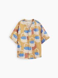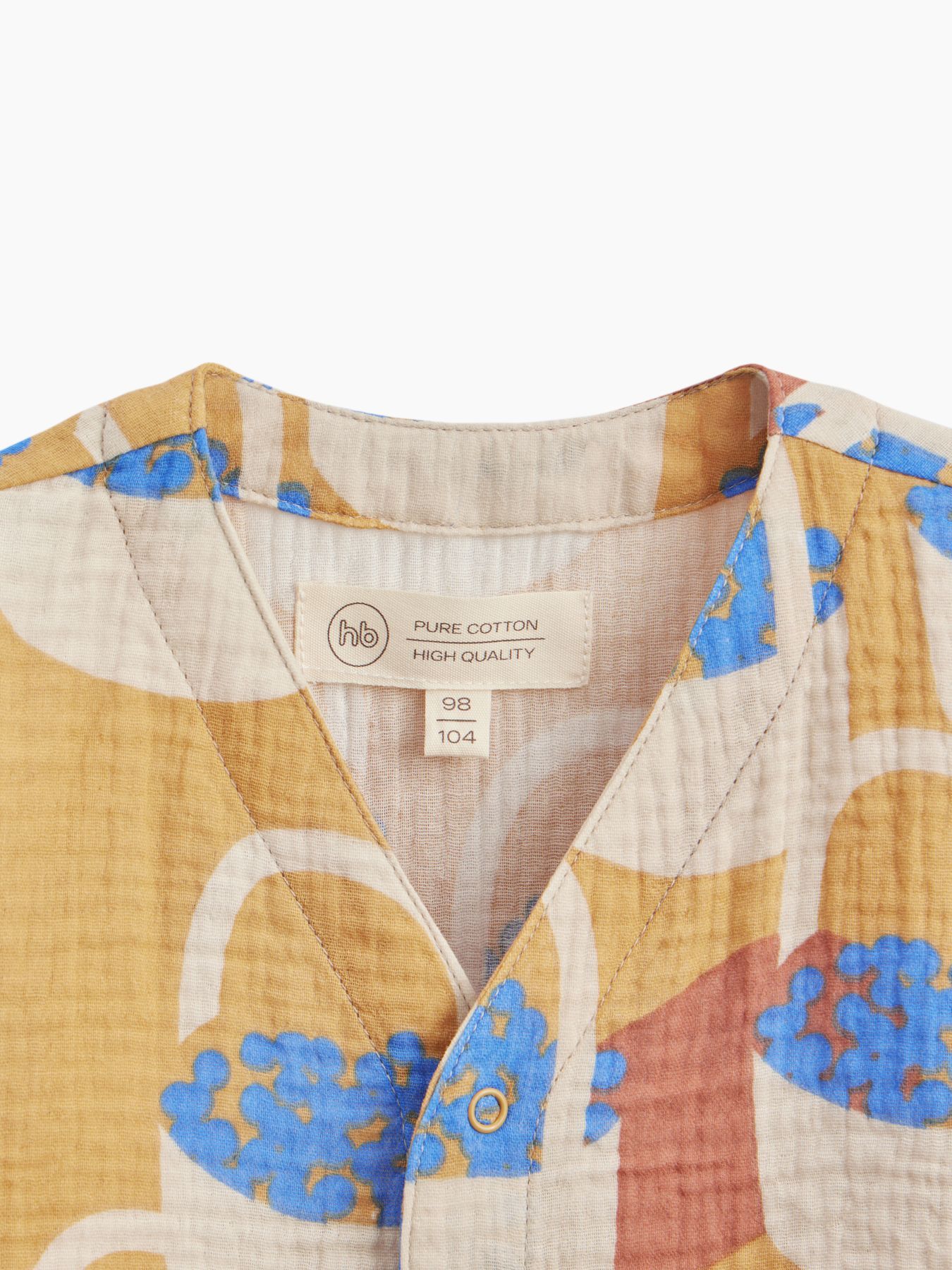 Рубашка из муслина с коротким рукавом подойдет девочкам и мальчикам. Тонкий и приятный на ощупь материал отличается высокой гигроскопичностью, обеспечивая комфорт в любую погоду. Свободный крой не стесняет движений, что делает эту модель универсальной для любых активностей. Светлая рубашка легко впишется в повседневные образы и станет базовым элементом гардероба, подходящим для города, пляжа или отдыха на природе. Можно носить как самостоятельный элемент или накинуть на плечи, дополнив купальный костюм или майку.