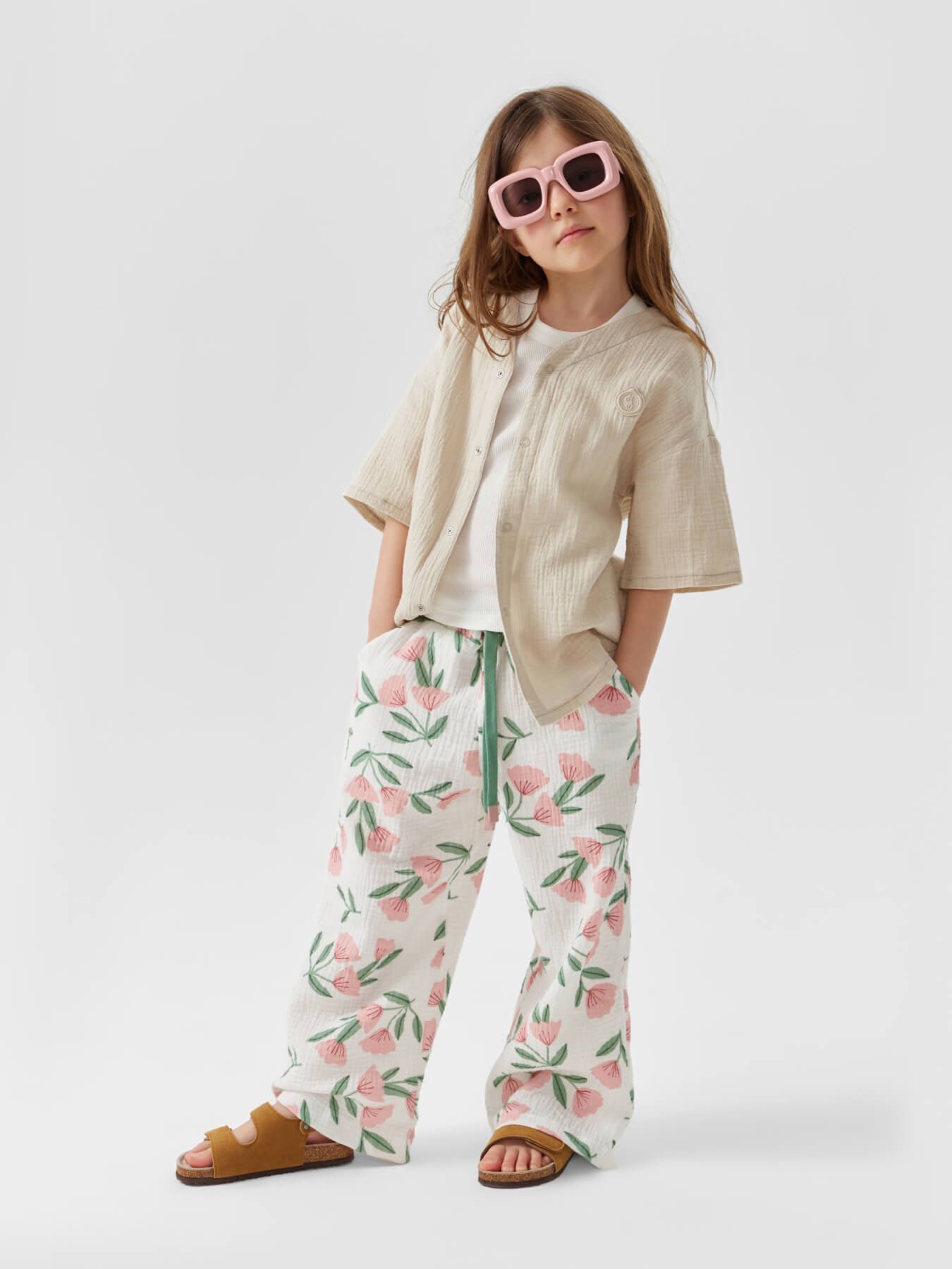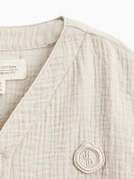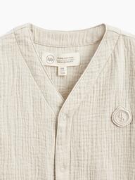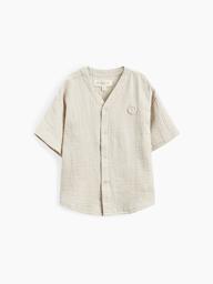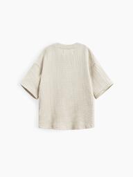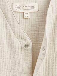 Рубашка из муслина с коротким рукавом подойдет девочкам и мальчикам. Тонкий и приятный на ощупь материал отличается высокой гигроскопичностью, обеспечивая комфорт в любую погоду. Свободный крой не стесняет движений, что делает эту модель универсальной для любых активностей. Светлая рубашка легко впишется в повседневные образы и станет базовым элементом гардероба, подходящим для города, пляжа или отдыха на природе. Можно носить как самостоятельный элемент или накинуть на плечи, дополнив купальный костюм или майку.