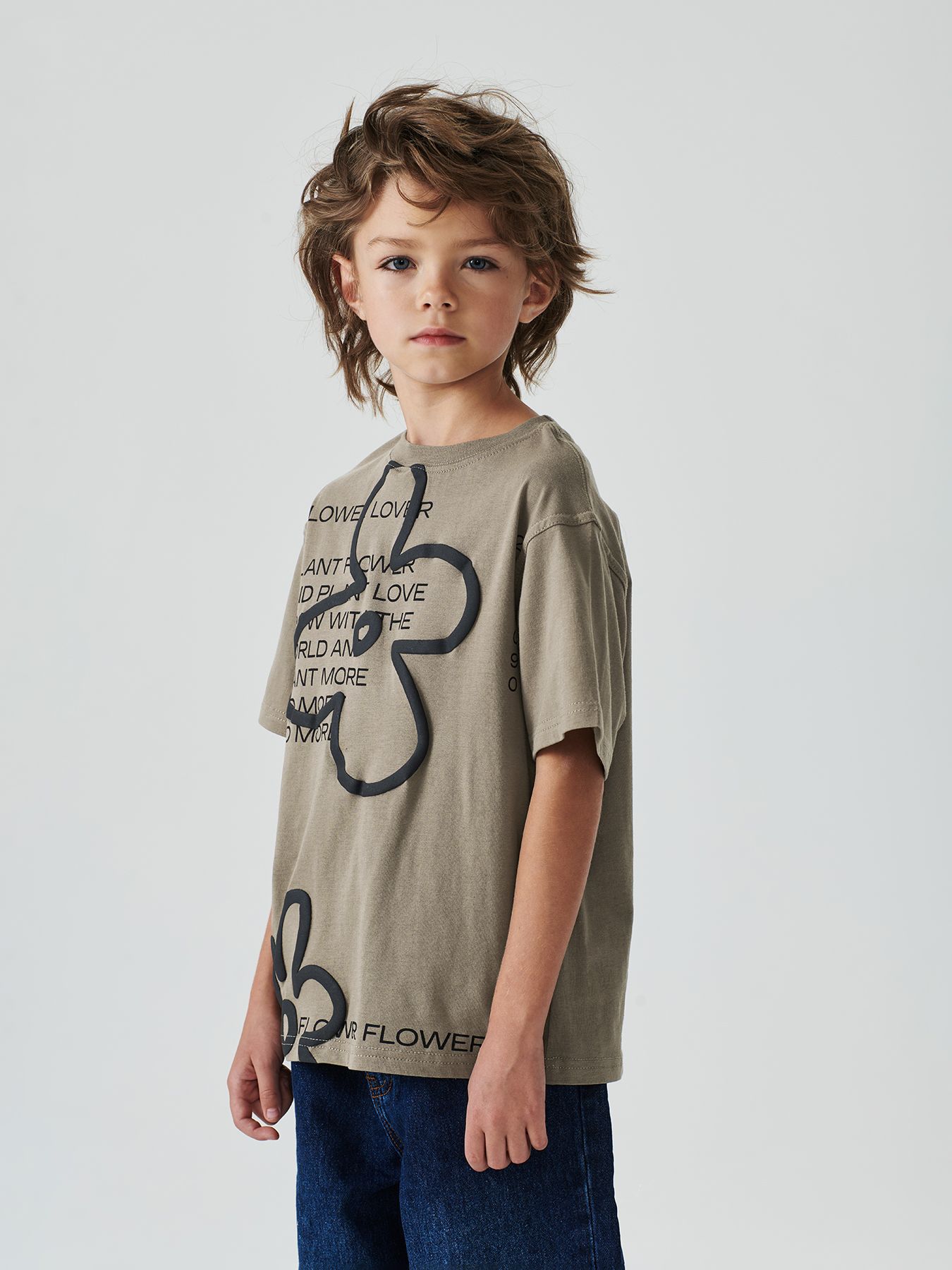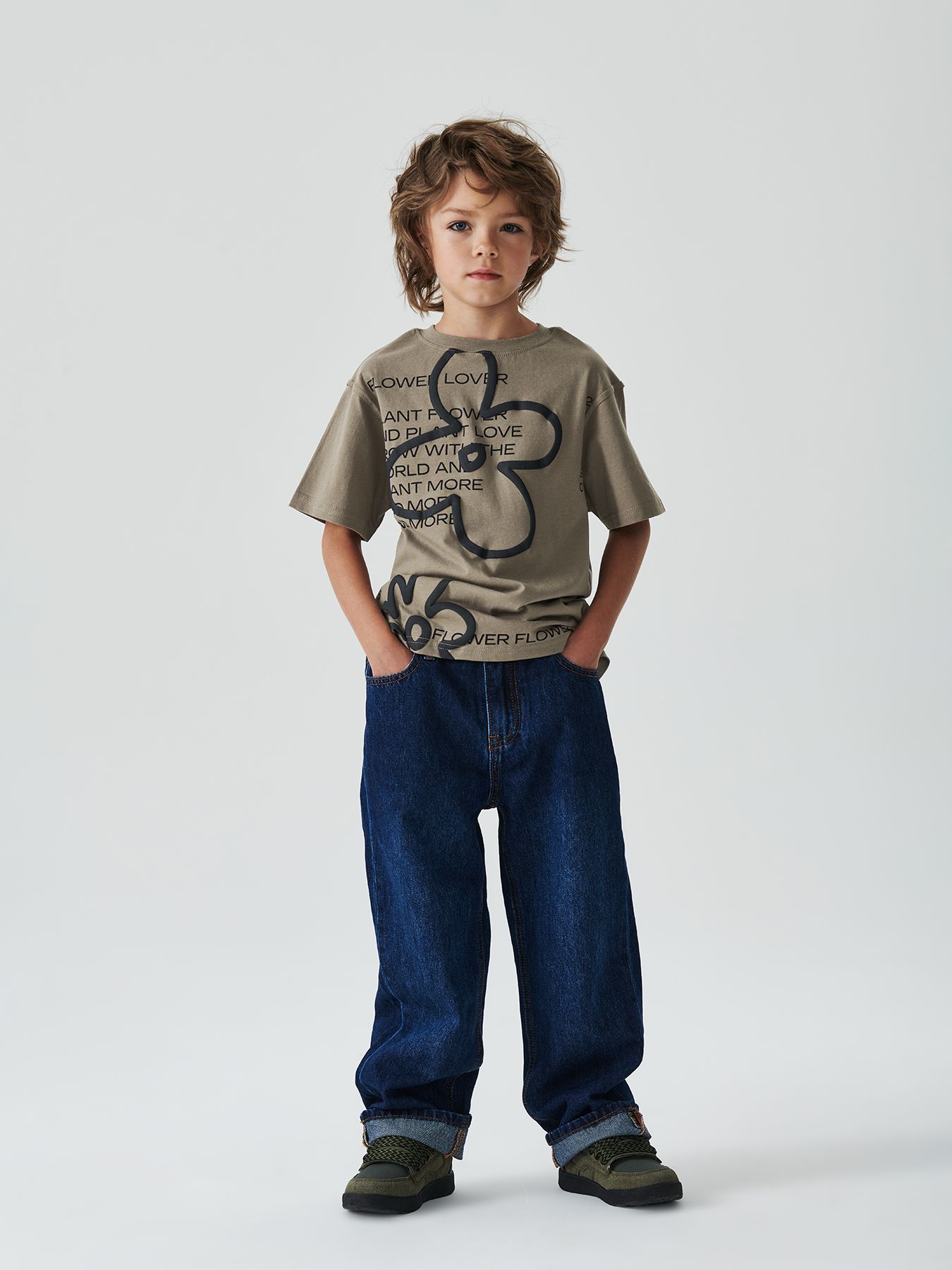 Модная футболка — основа стильного детского гардероба. Актуальный дизайн выделит малыша и поможет с юных лет прививать ребенку хороший вкус. Футболка скроена в стиле оверсайз, благодаря чему обеспечиваются актуальная посадка и свобода движений. Сшита из плотного качественного материала, в составе которого 100% хлопок. Горловина укреплена и не растягивается.