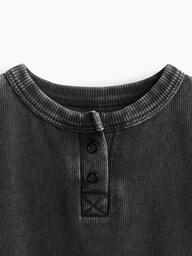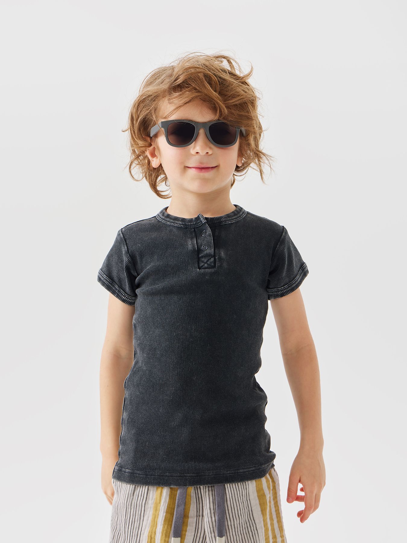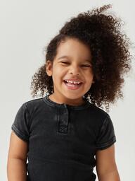 Футболка с пуговицами в районе горловины – универсальный вариант на каждый день и для особых выходов. Изготовлена из мягкой ткань, состоящей на 100% из хлопка. Материал приятен коже, хорошо впитывает влагу, дышит. В такой футболке комфортно проводить целый день на прогулках или в детском саду.