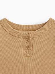 Футболка с пуговицами в районе горловины – универсальный вариант на каждый день и для особых выходов. Изготовлена из мягкой ткань, состоящей на 100% из хлопка. Материал приятен коже, хорошо впитывает влагу, дышит. В такой футболке комфортно проводить целый день на прогулках или в детском саду.