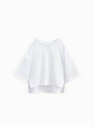 Футболка оверсайз со спущенной линией плеча и разрезами спереди отлично впишется в гардеробы девочек и мальчиков. Благодаря классическим цветам изделие легко сочетать, составляя модные комплекты. Свободный крой не сковывает движения. Материал, 100% хлопок, дышит и приятен коже. Горловина укреплена тесьмой.