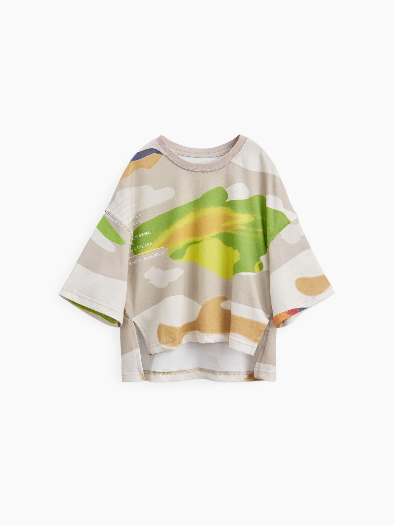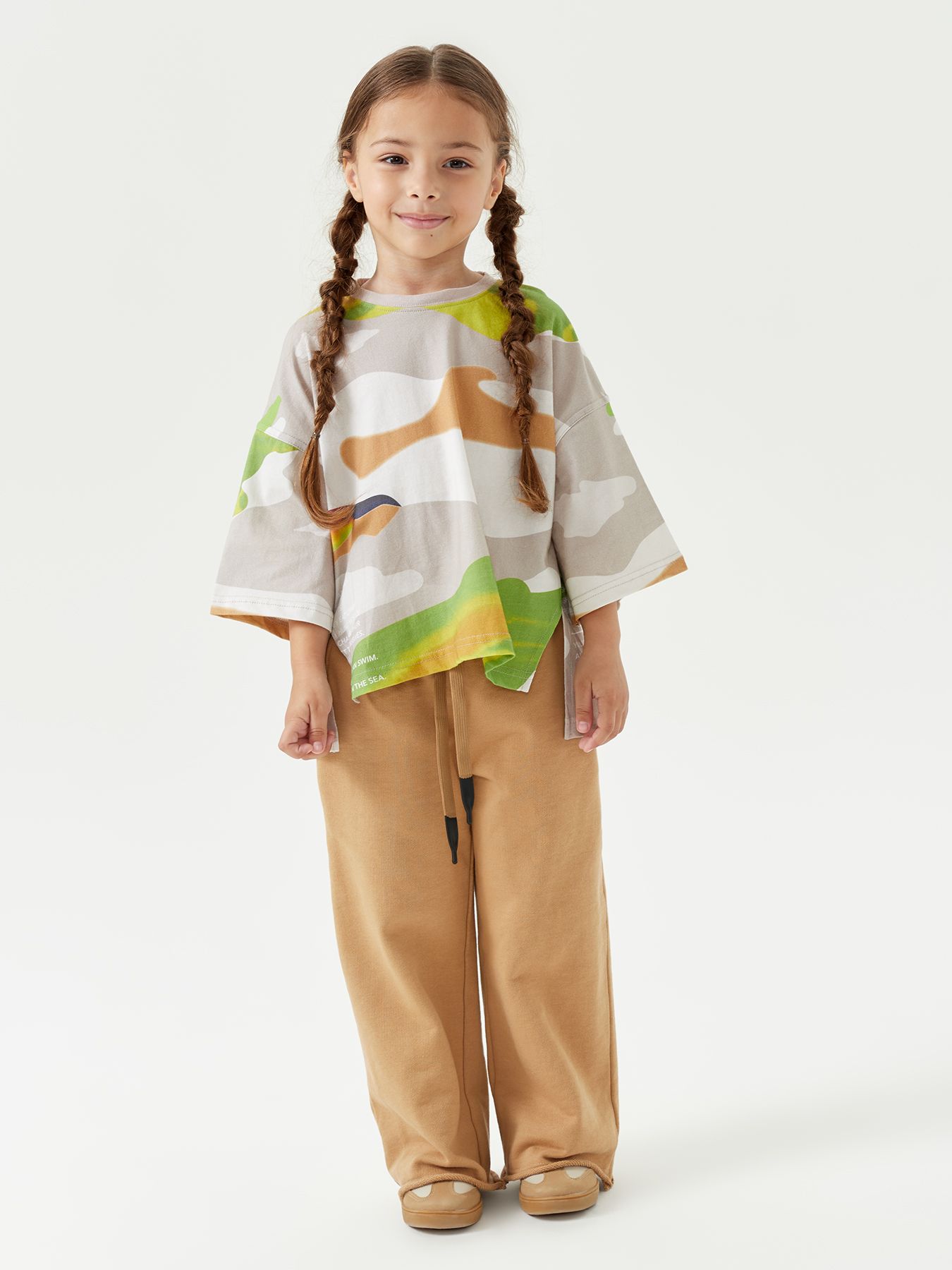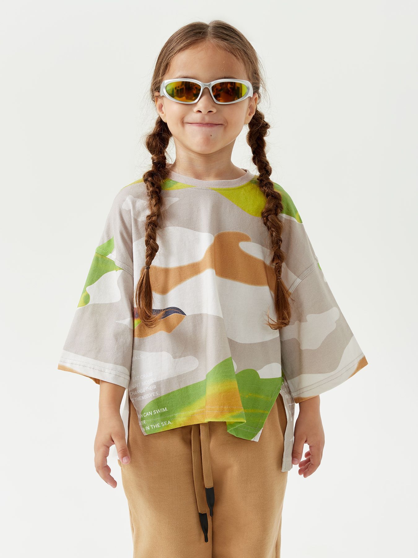 Футболка оверсайз со спущенной линией плеча и разрезами спереди отлично впишется в гардеробы девочек и мальчиков. Благодаря классическим цветам изделие легко сочетать, составляя модные комплекты. Свободный крой не сковывает движения. Материал, 100% хлопок, дышит и приятен коже. Горловина укреплена тесьмой.