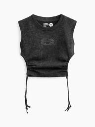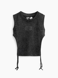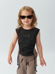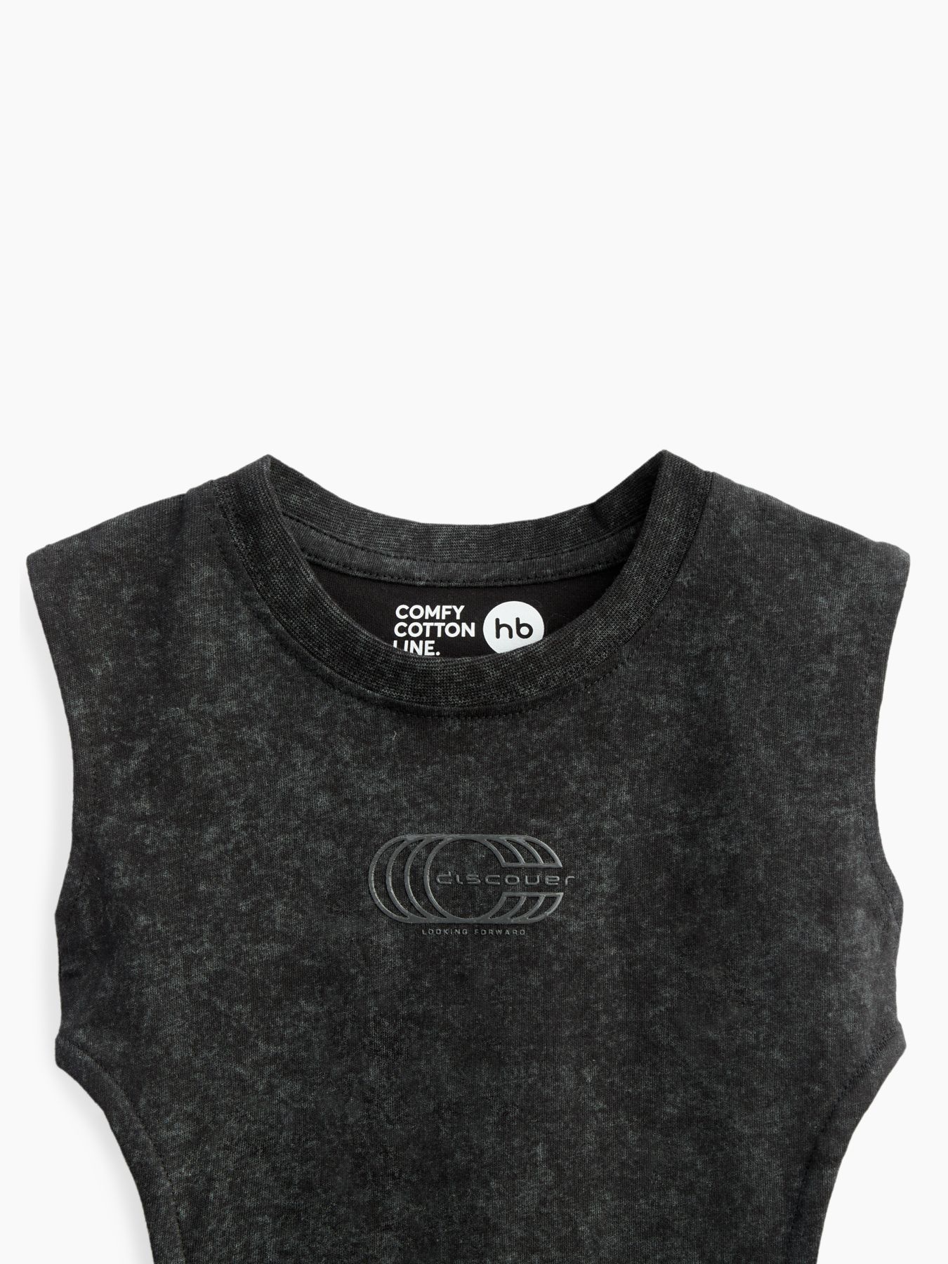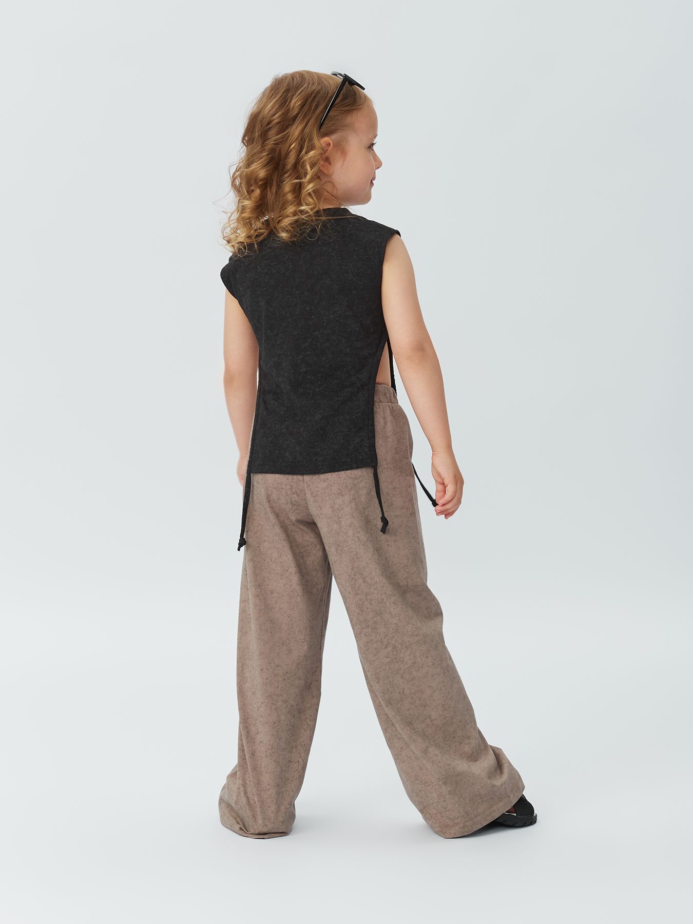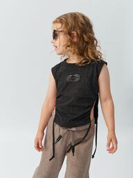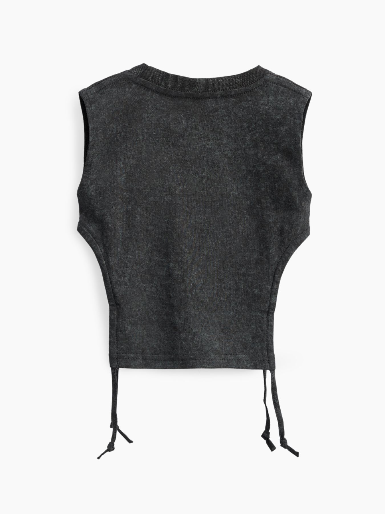Удобный топ можно стилизовать разными способами. Шнурки по бокам позволяют изменять длину топа. Изделие сшито из ткани, в составе которой 100% хлопок. Материал дышит, хорошо тянется. Проймы удобные, не натирают и не мешают. Горловина дополнительно укреплена тесьмой.