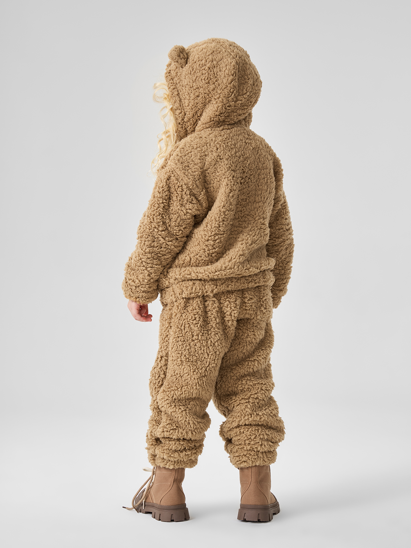 Удобный костюм решит проблему ежедневных образов. Толстовка на молнии подойдет для создания стильных многослойных комплектов. Благодаря молнии изделие легко надевать, не доставляя ребенку дискомфорт. Капюшон защитит от холода и ветра, а деталь в виде ушек сделает образ более милым. Посадка брюк регулируется на талии благодаря резинке с зажимом. В карманы можно убрать руки или важные ребенку мелочи. Костюм лаконичных цветов подойдет девочкам и мальчикам.