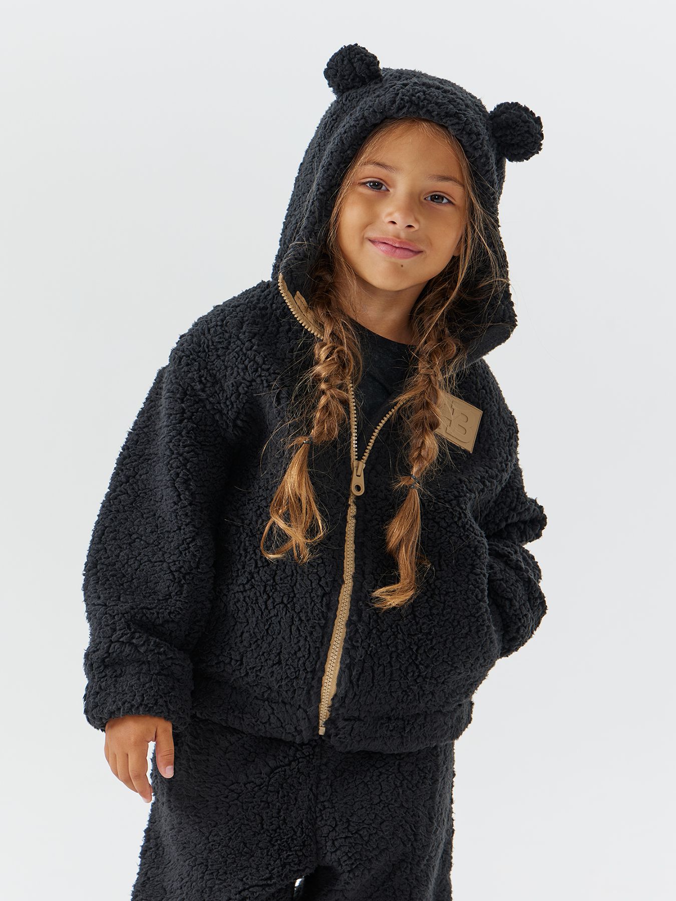 Удобный костюм решит проблему ежедневных образов. Толстовка на молнии подойдет для создания стильных многослойных комплектов. Благодаря молнии изделие легко надевать, не доставляя ребенку дискомфорт. Капюшон защитит от холода и ветра, а деталь в виде ушек сделает образ более милым. Посадка брюк регулируется на талии благодаря резинке с зажимом. В карманы можно убрать руки или важные ребенку мелочи. Костюм лаконичных цветов подойдет девочкам и мальчикам.