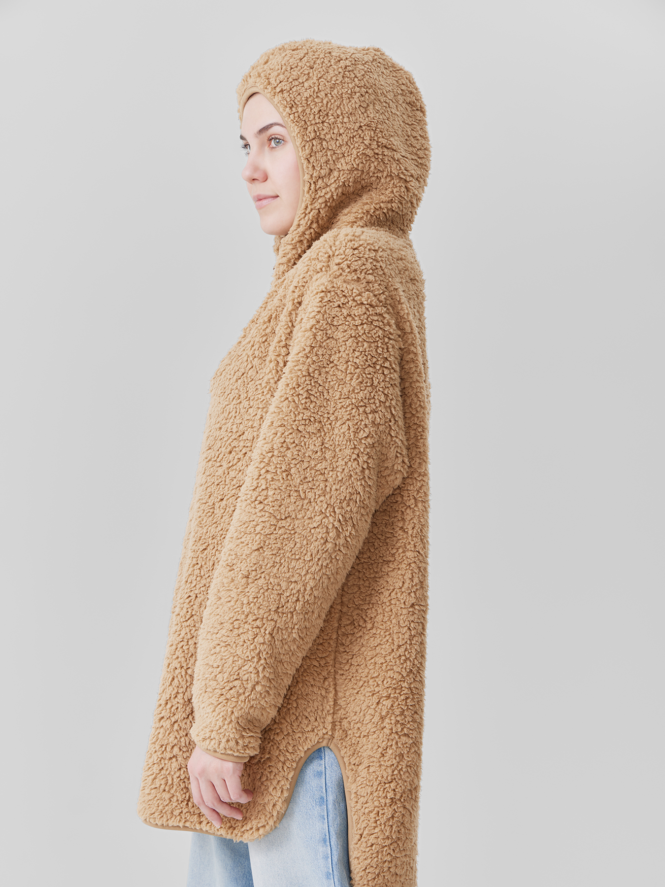 • Защита от холода и ветра — воротник-стойка с молнией и капюшон удерживают тепло и закрывают шею в прохладную погоду