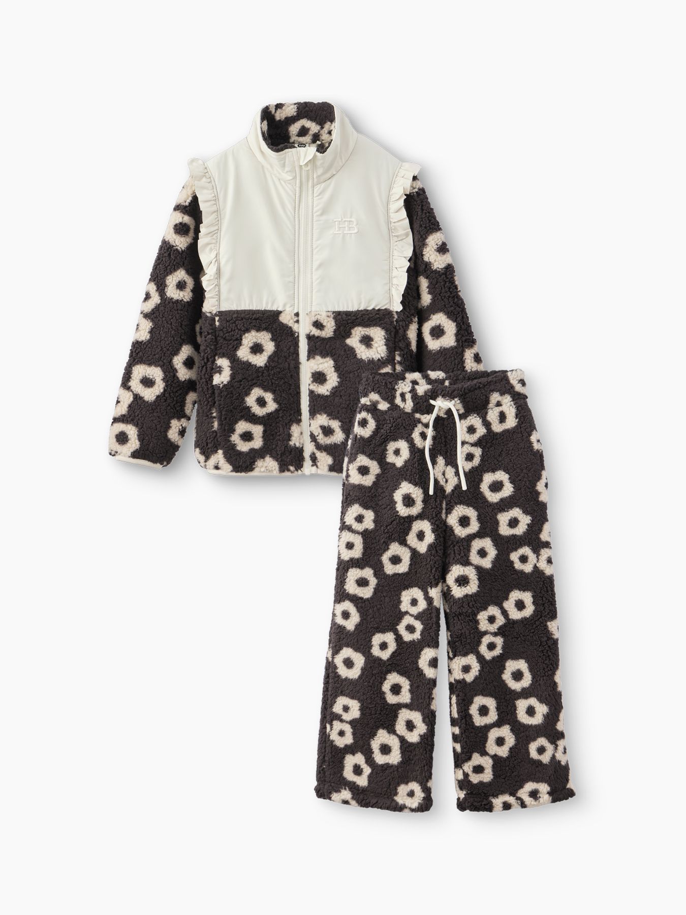 Комплект детский флисовый: джемпер и брюки black (flower)
