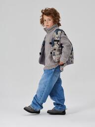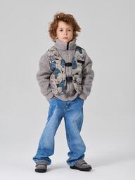 Комплект из джемпера и жилетки — практичный вариант для прохладной погоды. Джемпер с рубашечным воротником легко вписать в гардеробы девочек и мальчиков. Благодаря застежке изделие позволяет создавать многослойные образы. Жилетка — стильный акцент, который дополнительно защищает от ветра. Джемпер и жилет можно носить вместе и отдельно.