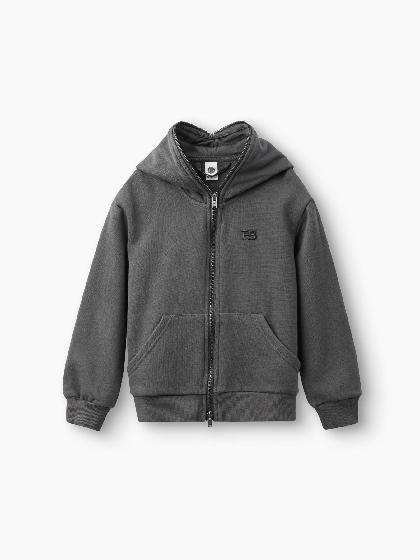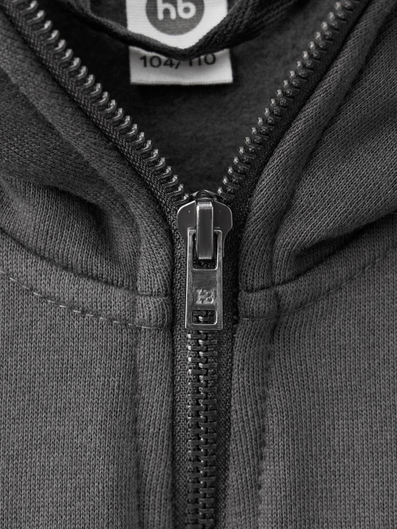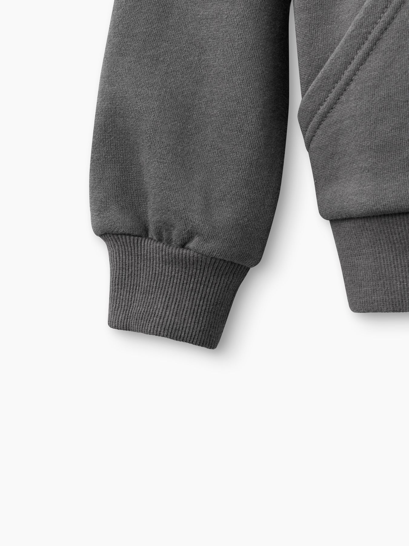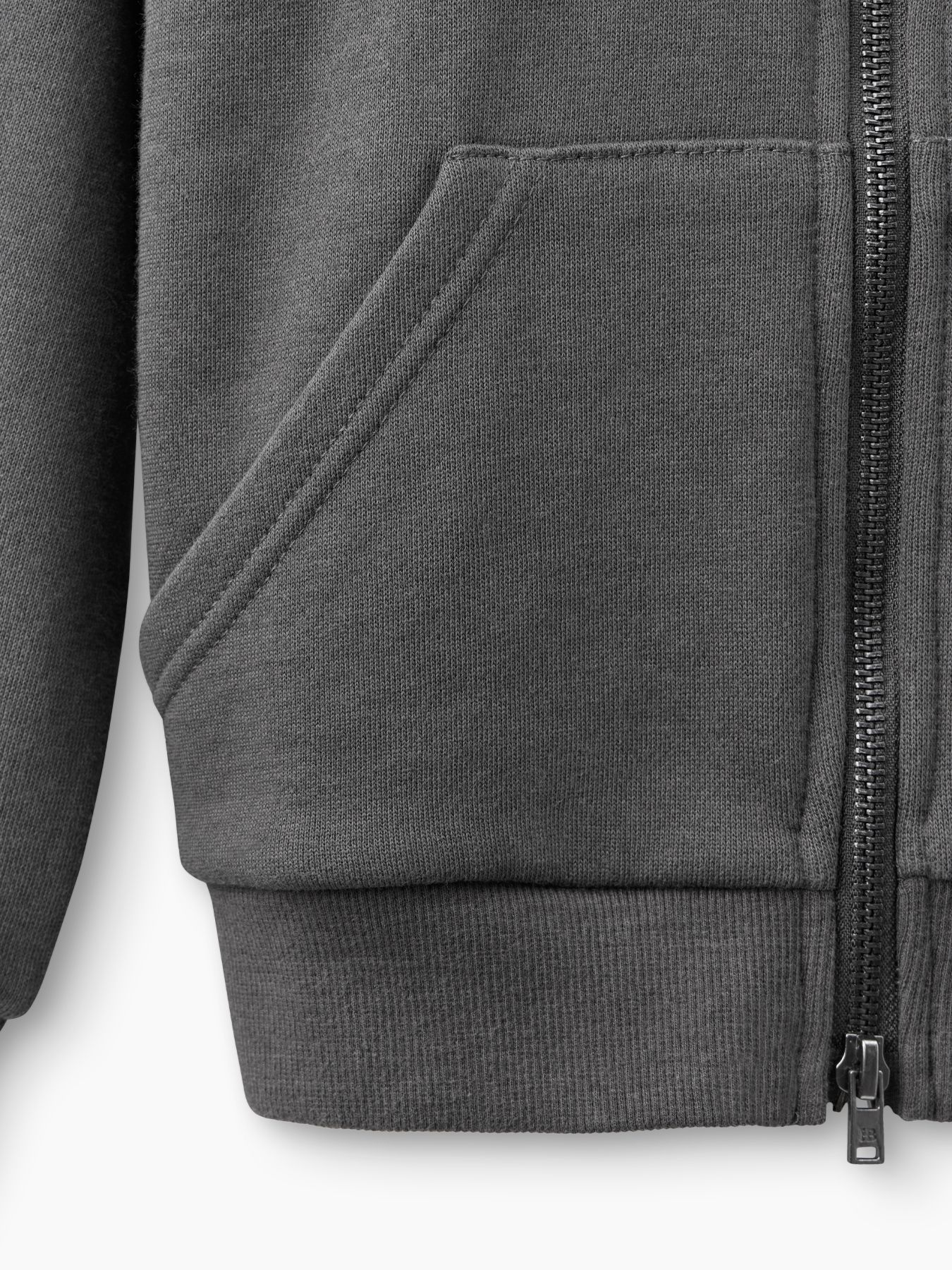 Толстовка на молнии позволит каждый день создавать новые многослойные образы. Изделие легко надевать и снимать: понравится детям, которые испытывают дискомфорт от вещей с плотной горловиной. Манжеты на рукавах и резинка по низу изделия защитят от ветра. В накладные карманы спереди можно спрятать руки. Очень высокая молния позволит закрыть лицо в ветреную прохладную погоду.
